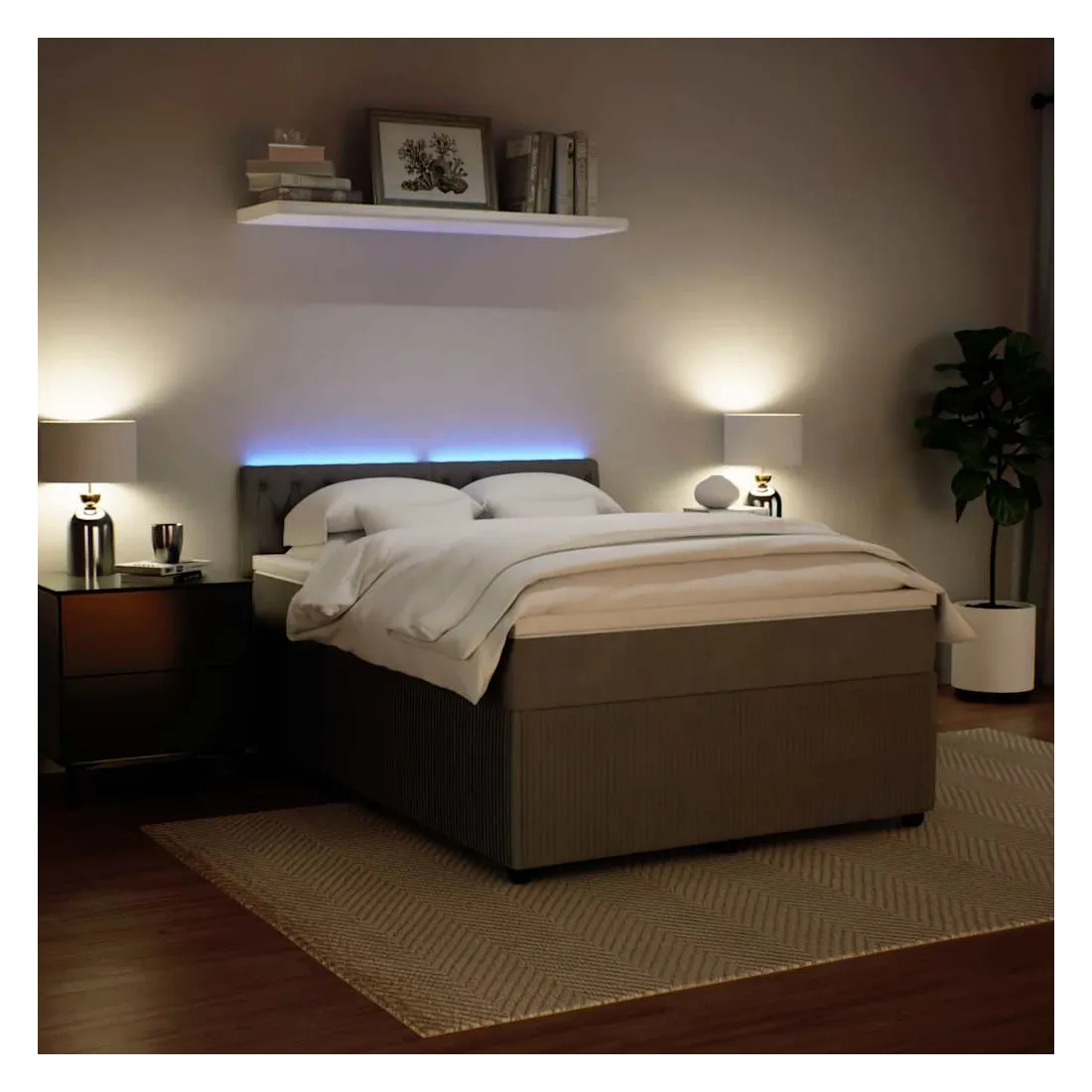 Utilisez ce lit à sommier pour profiter d'une nuit de sommeil réparatrice ! Il vous offre une relaxation maximale et un sommeil agréable. Matériau doux et confortable : le tissu en velours présente une surface douce et lisse qui offre une sensation agréable contre la peau, vous apportant chaleur et confort ultime.Matelas à ressorts ensachés : ce matelas à ressorts ensachés comporte des ressorts ensachés individuels qui fonctionnent indépendamment pour offrir un soutien personnalisé en réagissant uniquement à la pression exercée dans chaque zone. Cette conception empêche « l'enroulement » et réduit le transfert de mouvement par rapport aux matelas traditionnels à ressorts ouverts. Chaque ressort ensaché soutient le corps individuellement.Lumières LED pour une ambiance agréable : ce lit est équipé de lumières LED qui peuvent être facilement réglées pour créer un spectacle lumineux personnalisé. Vous pouvez personnaliser les modes, les couleurs et la luminosité pour améliorer l'ambiance de votre espace intérieur.Surmatelas confortable : ce surmatelas améliore le soutien et le confort grâce à sa surface douce et respirante, tout en prolongeant la durée de vie de votre matelas. Sa housse amovible permet un lavage facile, ce qui facilite l'entretien. Bon à savoir :Ce produit est doté d'un connecteur USB qui nécessite une source d'alimentation USB de 5V certifiée (non incluse).Pour des raisons d'hygiène, le matelas ne peut pas être retourné si l'emballage est retiré ou ouvert.Seule la partie avec un symbole de ciseaux peut être coupée et seule la partie avec l'USB continuera à fonctionner comme avant.