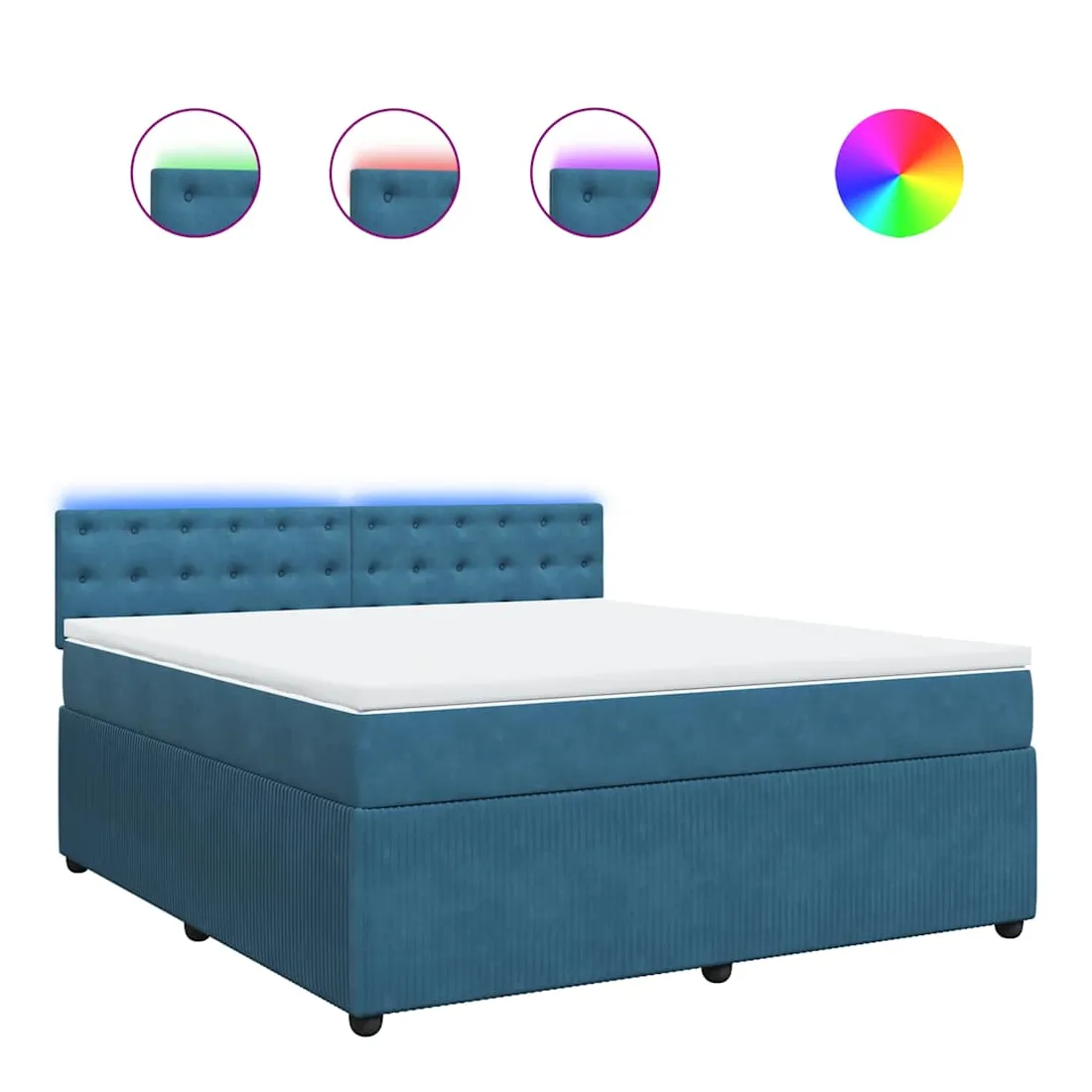 Utilisez ce lit à sommier pour profiter d'une nuit de sommeil réparatrice ! Il vous offre une relaxation maximale et un sommeil agréable. Matériau doux et confortable : le tissu en velours présente une surface douce et lisse qui offre une sensation agréable contre la peau, vous apportant chaleur et confort ultime.Matelas à ressorts ensachés : ce matelas à ressorts ensachés comporte des ressorts ensachés individuels qui fonctionnent indépendamment pour offrir un soutien personnalisé en réagissant uniquement à la pression exercée dans chaque zone. Cette conception empêche « l'enroulement » et réduit le transfert de mouvement par rapport aux matelas traditionnels à ressorts ouverts. Chaque ressort ensaché soutient le corps individuellement.Lumières LED pour une ambiance agréable : ce lit est équipé de lumières LED qui peuvent être facilement réglées pour créer un spectacle lumineux personnalisé. Vous pouvez personnaliser les modes, les couleurs et la luminosité pour améliorer l'ambiance de votre espace intérieur.Surmatelas confortable : ce surmatelas améliore le soutien et le confort grâce à sa surface douce et respirante, tout en prolongeant la durée de vie de votre matelas. Sa housse amovible permet un lavage facile, ce qui facilite l'entretien. Bon à savoir :Ce produit est doté d'un connecteur USB qui nécessite une source d'alimentation USB de 5V certifiée (non incluse).Pour des raisons d'hygiène, le matelas ne peut pas être retourné si l'emballage est retiré ou ouvert.Seule la partie avec un symbole de ciseaux peut être coupée et seule la partie avec l'USB continuera à fonctionner comme avant.