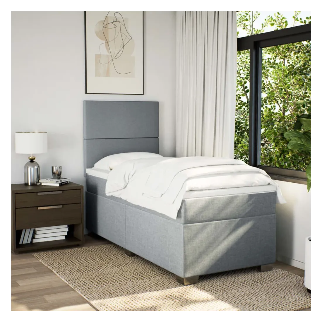 Utilisez ce lit à sommier pour profiter d'une nuit de sommeil réparatrice ! Il vous offre une relaxation maximale et un sommeil agréable. Matériau doux et durable : le tissu en polyester allie douceur, respirabilité et durabilité, vous garantissant un confort et une convivialité ultimes.Matelas à ressorts ensachés : ce matelas à ressorts ensachés comporte des ressorts ensachés individuels qui fonctionnent indépendamment pour offrir un soutien personnalisé en réagissant uniquement à la pression exercée dans chaque zone. Cette conception empêche « l'enroulement » et réduit le transfert de mouvement par rapport aux matelas traditionnels à ressorts ouverts. Chaque ressort ensaché soutient le corps individuellement.Tête de lit réglable en hauteur : la tête de lit est réglable en hauteur pour s'adapter à vos préférences.Surmatelas confortable : ce surmatelas améliore le soutien et le confort grâce à sa surface douce et respirante, tout en prolongeant la durée de vie de votre matelas. Sa housse amovible permet un lavage facile, ce qui facilite l'entretien.Lattes pour un soutien optimal : le cadre de lit est complété par des lattes pour offrir un soutien et une respirabilité essentiels à votre matelas. Bon à savoir :Pour des raisons d'hygiène, le matelas ne peut pas être retourné si l'emballage est retiré ou ouvert.