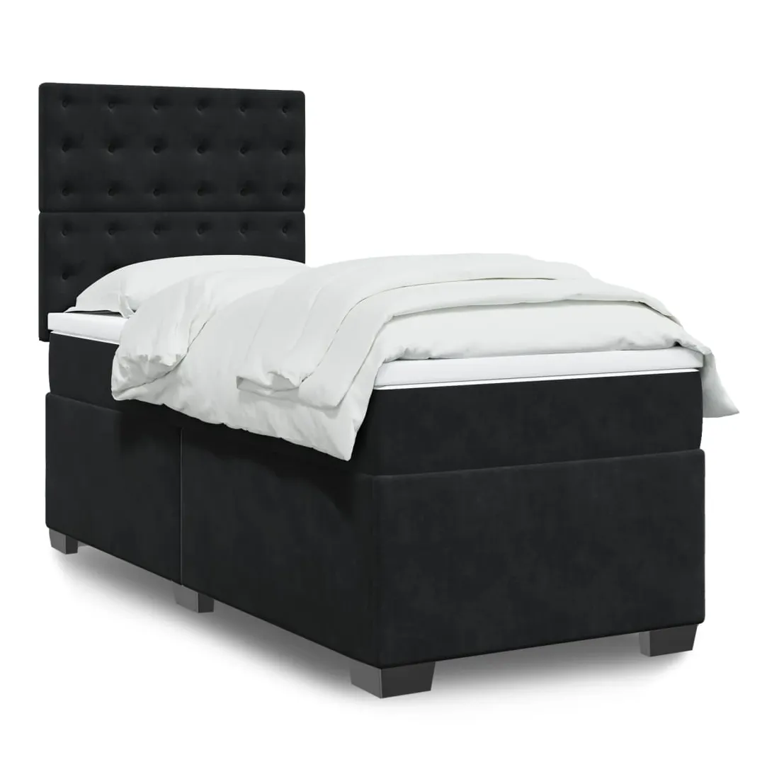 Utilisez ce lit à sommier pour profiter d'une nuit de sommeil réparatrice ! Il vous offre une relaxation maximale et un sommeil agréable. Matériau doux et confortable : le tissu en velours présente une surface douce et lisse qui offre une sensation agréable contre la peau, vous apportant chaleur et confort ultime.Matelas à ressorts ensachés : ce matelas à ressorts ensachés comporte des ressorts ensachés individuels qui fonctionnent indépendamment pour offrir un soutien personnalisé en réagissant uniquement à la pression exercée dans chaque zone. Cette conception empêche « l'enroulement » et réduit le transfert de mouvement par rapport aux matelas traditionnels à ressorts ouverts. Chaque ressort ensaché soutient le corps individuellement.Tête de lit réglable en hauteur : la tête de lit est réglable en hauteur pour s'adapter à vos préférences.Surmatelas confortable : ce surmatelas améliore le soutien et le confort grâce à sa surface douce et respirante, tout en prolongeant la durée de vie de votre matelas. Sa housse amovible permet un lavage facile, ce qui facilite l'entretien.Lattes pour un soutien optimal : le cadre de lit est complété par des lattes pour offrir un soutien et une respirabilité essentiels à votre matelas. Bon à savoir :Pour des raisons d'hygiène, le matelas ne peut pas être retourné si l'emballage est retiré ou ouvert.
