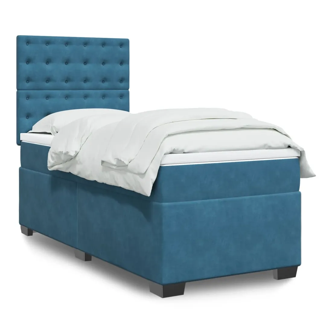 Sommier à lattes de lit avec matelas bleu 100x200 cm