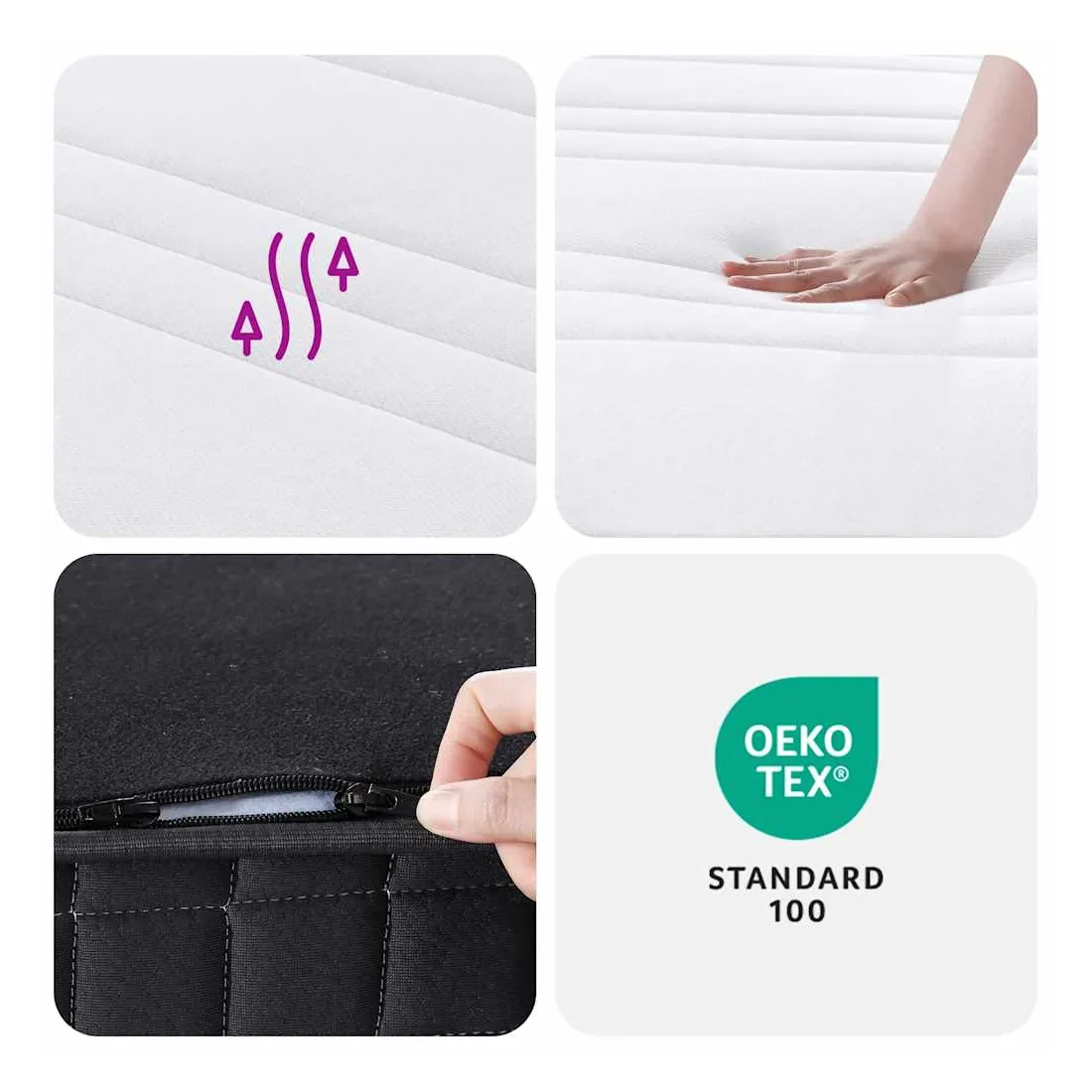 Ce matelas à ressorts bonnell est conçu pour vous apporter une sensation agréable et une expérience de sommeil confortable à la maison. Durabilité et longévité : le tissu présente un aspect simple et épuré tout en restant respirant, doux pour la peau et durable. Excellent soutien : le système de ressorts bonnell se compose de ressorts d'acier en forme de sablier interconnectés, fermes et stables, qui constituent une base de soutien durable pour le matelas. Confort accru : le matelas à ressorts est conçu avec plusieurs couches, dont une couche de mousse, une couche de matelas isolant et une couche de ressorts. Cette combinaison offre une sensation de douceur et de confort pour toutes les positions de sommeil. En outre, le matelas absorbe efficacement les bruits et les vibrations provoqués par les mouvements de rotation, garantissant ainsi un sommeil paisible et non perturbé. Entretien facile : le matelas en mousse à ressorts est doté d'une longue fermeture éclair dans le bas, ce qui permet de retirer facilement la housse pour la nettoyer. Bon à savoir :Ce matelas est composé de deux noyaux de matelas individuels, combinés pour former un matelas unique et unifié.La housse du matelas est lavable jusqu'à 40 °C. Veillez à ne pas la laver fréquemment. Pour votre confort, le matelas est compressé et roulé dans une boîte, et vous pouvez facilement le déplacer et l'installer dans votre pièce.