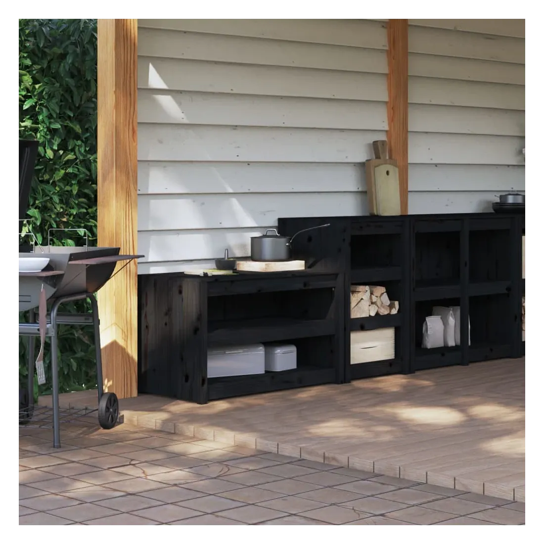 Créez une cuisine d'extérieur avec ces armoires de cuisine d'extérieur en bois selon vos souhaits et profitez du confort dans le jardin. Bois de pin massif : le bois de pin massif est un matériau naturel magnifique. Le bois de pin a un grain droit et les nœuds donnent au matériau son aspect caractéristique et rustique.Grand espace de rangement : l'armoire de cuisine d'extérieur offre suffisamment d'espace pour ranger les bols, les assiettes, les casseroles et autres articles de cuisine.Dessus robuste : le dessus de l'armoire de cuisine en bois peut être utilisé pour placer des épices, des ustensiles de cuisine et des produits de nettoyage.Design modulaire : cette armoire de cuisine de jardin fait partie des éléments de cuisine d'extérieur. Vous pouvez la combiner avec d'autres modèles pour créer une cuisine d'extérieur spacieuse en fonction de vos préférences et de l'espace disponible ! Attention :Afin d'éviter qu'il ne bascule, ce produit doit être utilisé avec le dispositif de fixation murale fourni.