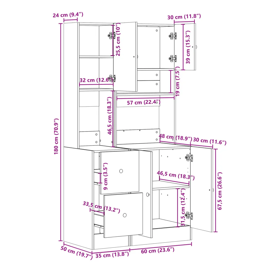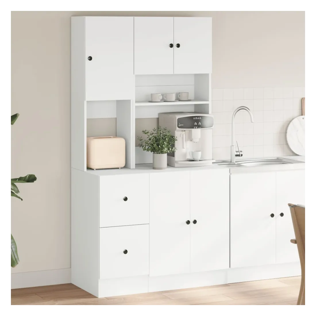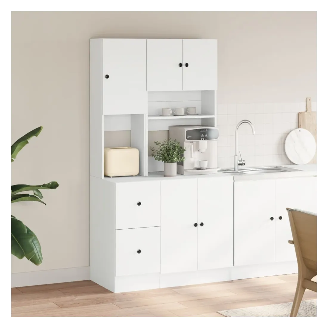 Si vous souhaitez garder vos fournitures de cuisine organisées, cette armoire de cuisine sera un choix parfait pour vous. Matériau durable : le bois d'ingénierie est d'une qualité exceptionnelle avec une surface lisse et présente également résistance, stabilité et résistance à l'humidité.Grand espace de rangement : le meuble de cuisine offre un grand espace de rangement pour ranger des bols, des assiettes, des casseroles et d'autres appareils de cuisine.Conception pratique : cette armoire de cuisine est équipée de portes et de tiroirs, ce qui vous permet de mieux ranger les fournitures de cuisine tout en garantissant leur propreté.Large application : L'armoire de cuisine peut être largement utilisée dans les restaurants, les hôtels, les lieux de travail et les maisons.Attention :Pour éviter qu'il ne bascule, ce produit doit être utilisé avec le dispositif de fixation murale fourni. Bon à savoir :Les vis et les chevilles pour l'intérieur du mur ne sont pas incluses. Nous vous conseillons de trouver et d'utiliser des vis et des chevilles adaptées spécifiquement à vos murs. Si vous n'êtes pas sûr, vous pouvez consulter un professionnel. Veuillez lire et suivre chaque étape des instructions.