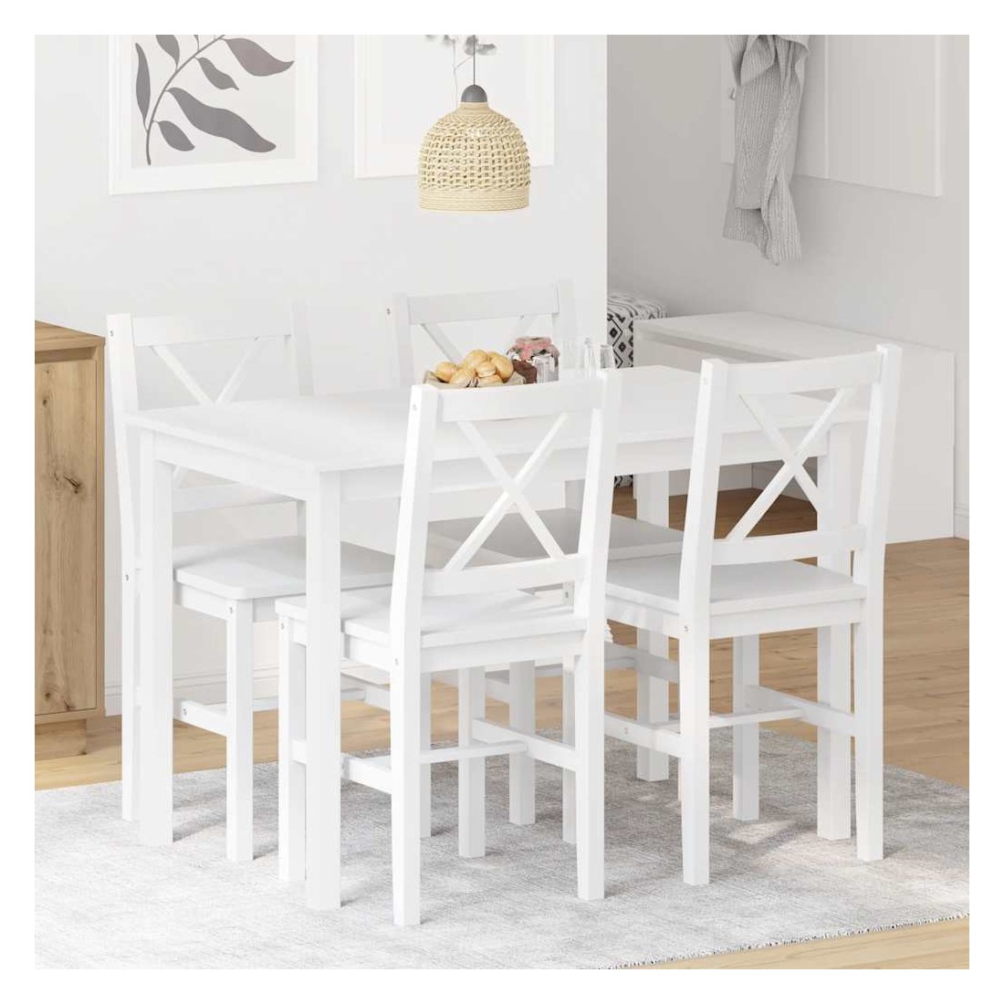 Cet ensemble de salle à manger en bois de 5 pièces, conçu avec des lignes épurées et simples, est un excellent choix pour votre salle à manger ou cuisine. L'élégance simple de cet ensemble de salle à manger rendra les dîners quotidiens spéciaux. Cet ensemble de salle à manger est fabriqué en bois solide avec une finition colorée attrayante pour un aspect élégant, ce qui apportera certainement des années de service. La livraison inclut quatre chaises et une table.