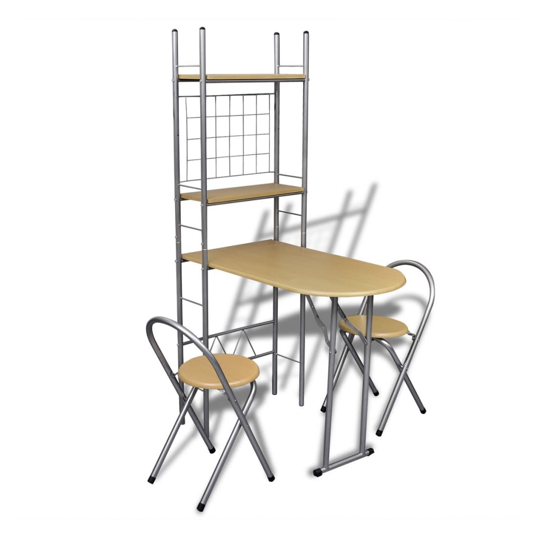 Notre jeu de bar petit-déjeuner combine style et fonctionnalité. La conception compacte le rend idéal pour les appartements ou autres petits espaces. Les cadres en acier de qualité sont très stables et durables. La table peut être rabattue pour que le meuble puisse être utilisé comme une étagère, pour garder vos choses rangées et accessibles. Les chaises pliables peuvent être rangées ainsi. L'assemblage est assez facile. Livré avec 1 table pliable et 2 chaises pliables.