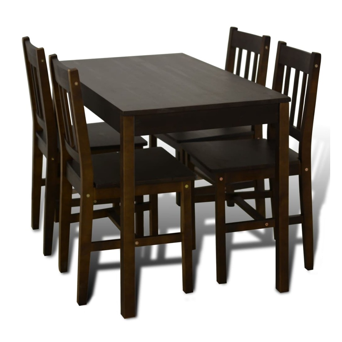 Ce jeu de salle à manger en bois de 5 pièces, conçu avec des lignes épurées et simples, est un excellent choix pour votre salle à manger ou cuisine. L'élégance simple de cet ensemble de salle à manger rendra les dîners quotidiens spéciaux. Cet ensemble de salle à manger est fabriqué en bois de pin massif de haute qualité, ce qui permet une grande stabilité et assure une excellente durabilité et une longue durée de vie. En outre, la surface lisse de l'ensemble de salle à manger le rend facile à nettoyer. Il est également facile à assembler. La livraison inclut 4 chaises et une table.
