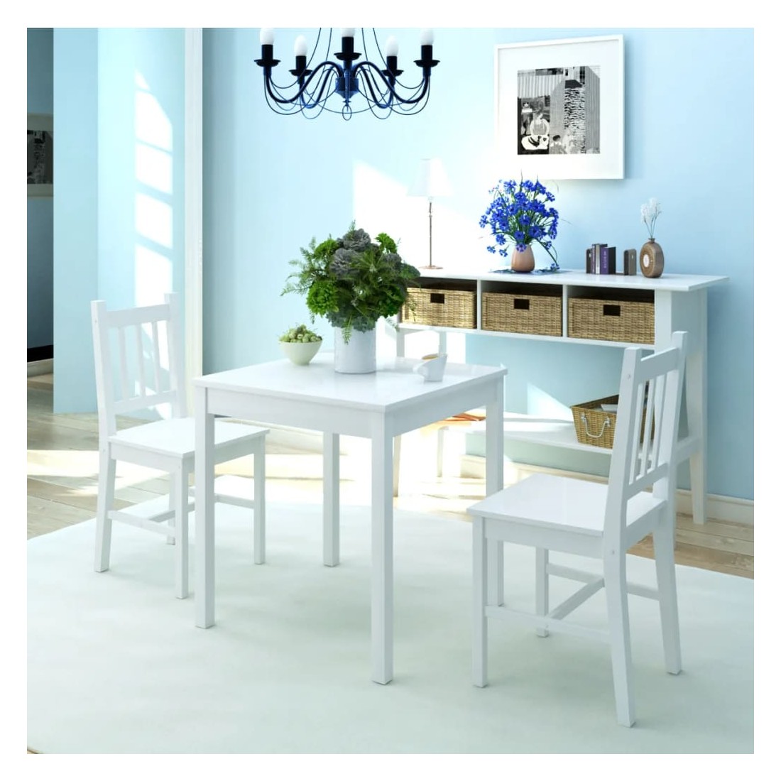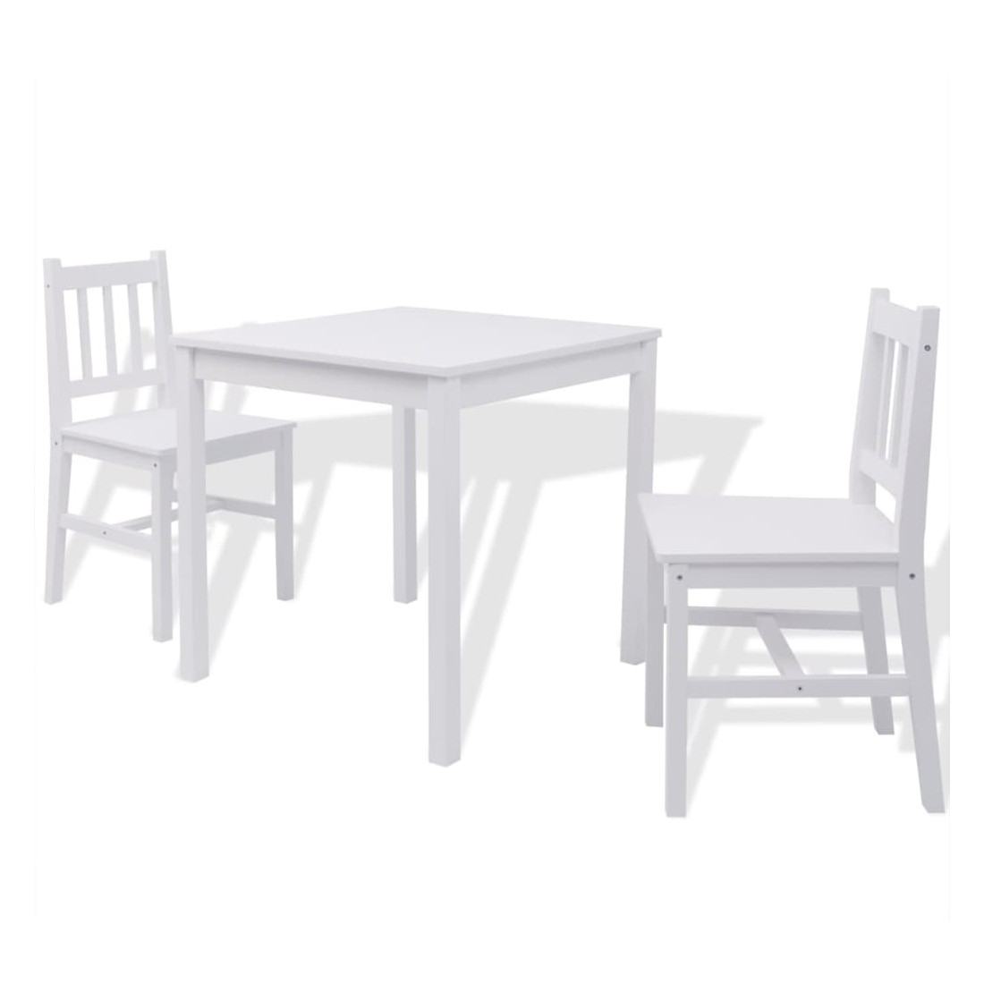 Cet ensemble de salle à manger en bois, composé d'une table et de deux chaises, a une conception simple mais élégante et ajoutera une touche de style à votre décor intérieur. Fabriquées en pinède de haute qualité, la table et les chaises de salle à manger sont très stables et durables. Cet ensemble de salle à manger est facile à nettoyer au moyen d'un chiffon humide. Facile à assembler. La livraison comprend 1 table et 2 chaises.