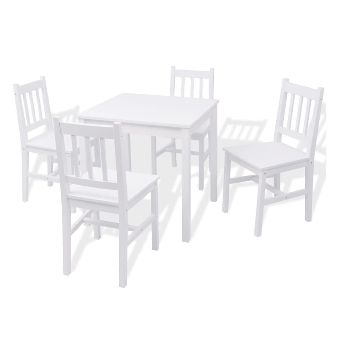 Cet ensemble de salle à manger, composé d'une table et de quatre chaises, a une conception simple mais élégante et ajoutera une touche de style à votre décor intérieur. Fabriquées en pinède de haute qualité, la table et les chaises de salle à manger sont très stables et durables. Cet ensemble de salle à manger est facile à nettoyer au moyen d'un chiffon humide. Facile à assembler. La livraison comprend 1 table et 4 chaises.