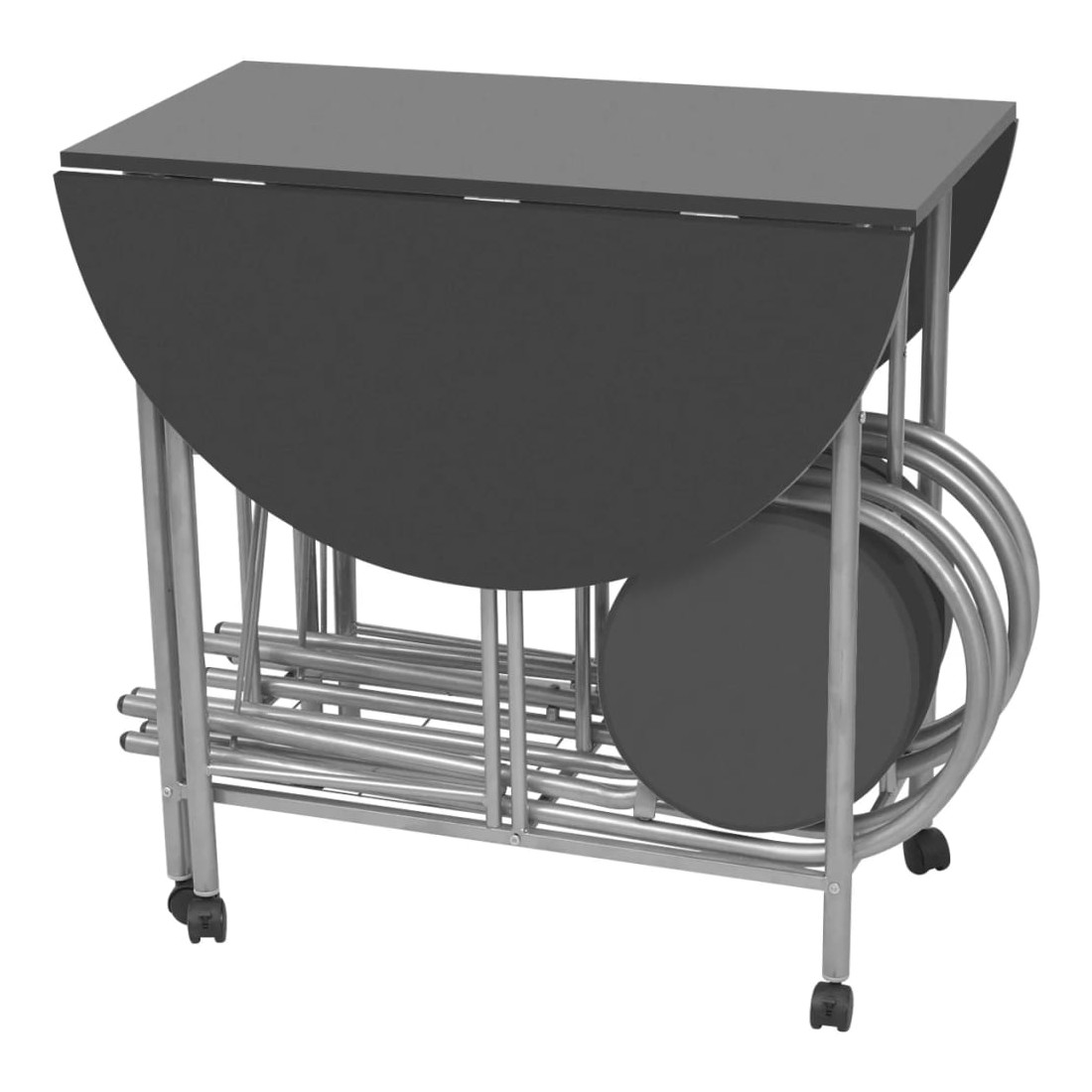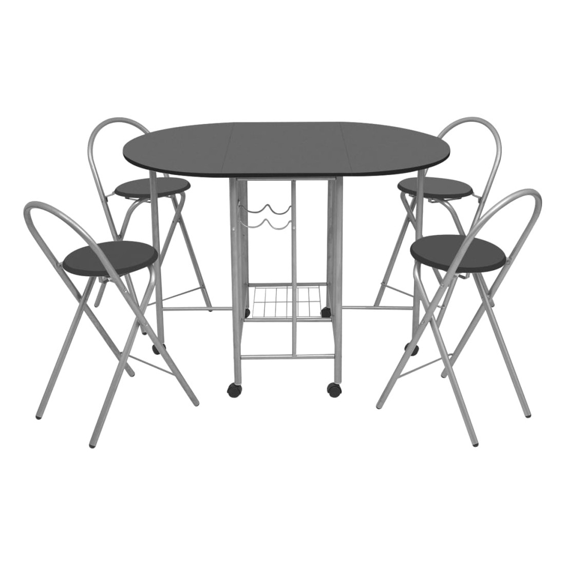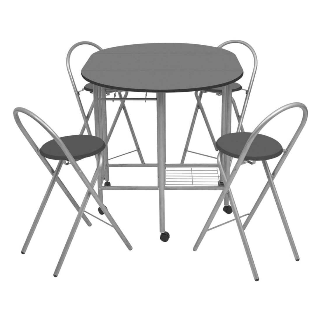 Notre ensemble de salle à manger pliable et élégant en MDF deviendra l'attraction principale dans votre cuisine ! Les cadres en fer galvanisé rendent la table et les chaises solides et robustes et grâce à leur construction légère, tous les éléments sont faciles à déplacer. Fait de MDF de haute qualité, l'ensemble de salle à manger est durable et facile à nettoyer. Grâce à son design pliable, les chaises peuvent être stockées sous la table pliable afin d'économiser de l'espace de stockage lorsqu'elles ne sont pas utilisées, tout en rendant l'ensemble idéal pour les cuisines et les salons plus petits. La table est équipée de roulettes avec freins afin de compléter sa facilité de stockage et sa maniabilité. La livraison comprend 1 table et 4 chaises.