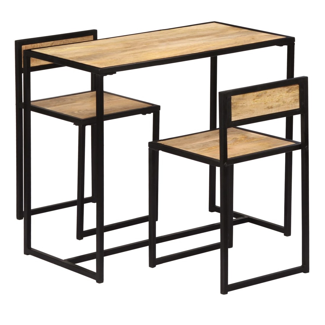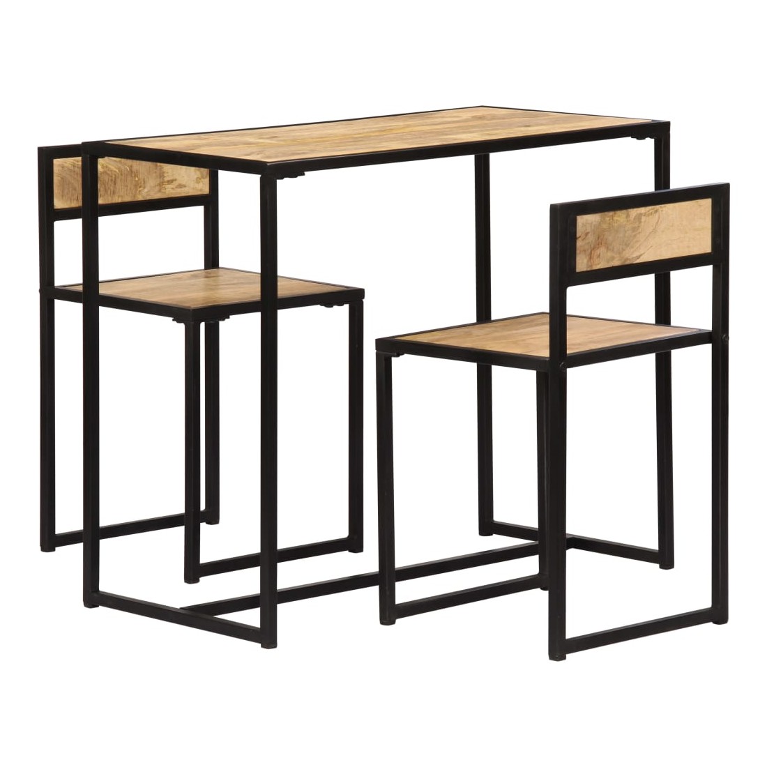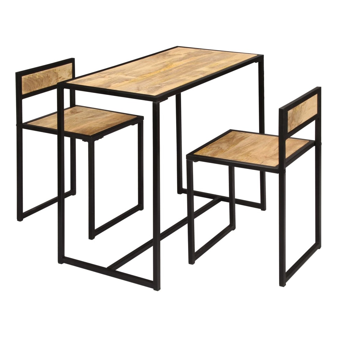 Cet ensemble de salle à manger en bois de manguier solide dégage un charme vintage qui sera un supplément accrocheur à la salle à manger. La table de salle à manger et les chaises sont faites de bois de manguier solide, un bois dur avec des grains denses. Le bois brut de manguier a non seulement la force de supporter le poids, mais résiste également à l'usure du temps. En conséquence, cet ensemble de dîner de style vintage est magnifique et très résistant. De plus, le cadre en fer enduit de poudre ajoute de la stabilité et de la robustesse aux chaises et à la table. La livraison comprend 1 table et 2 chaises.