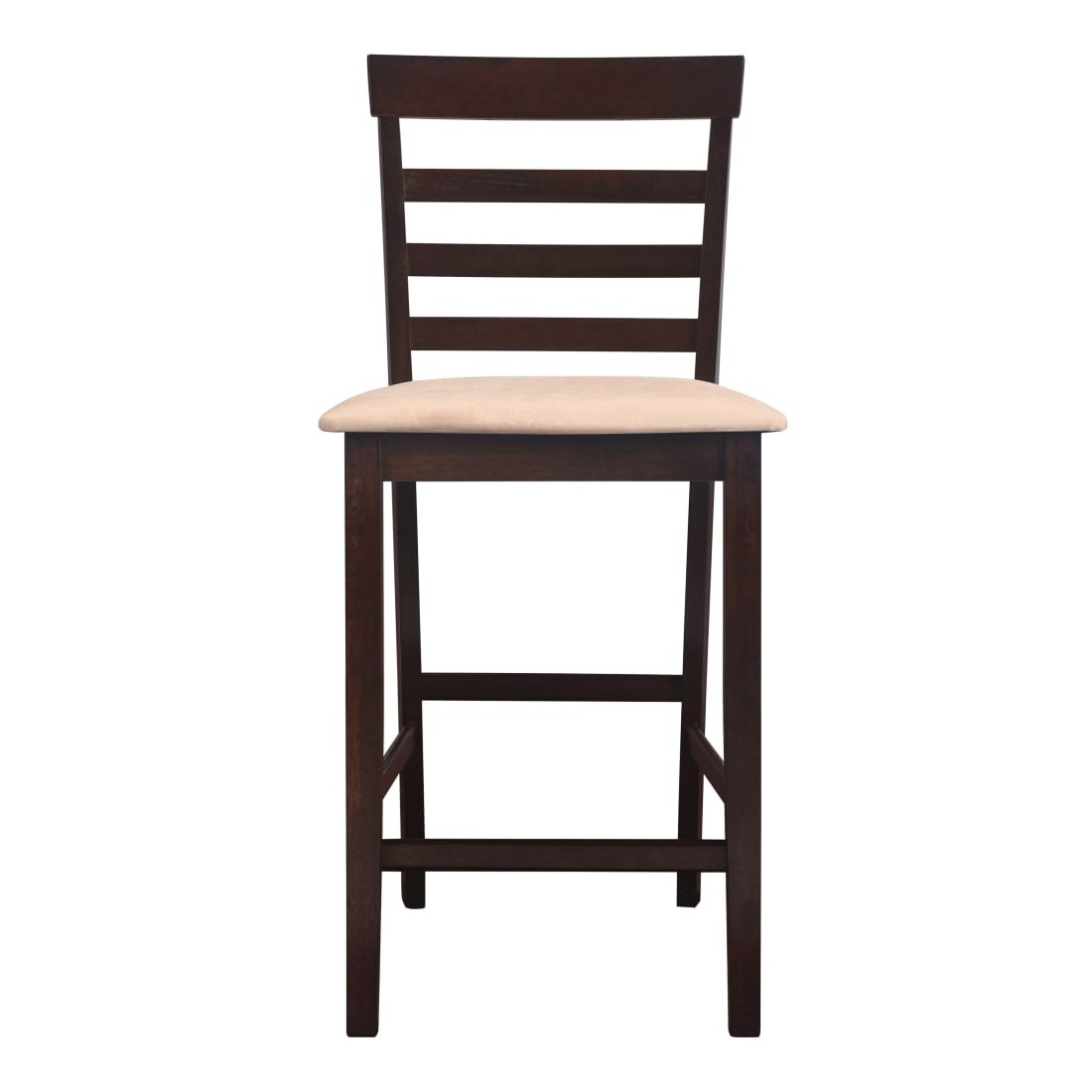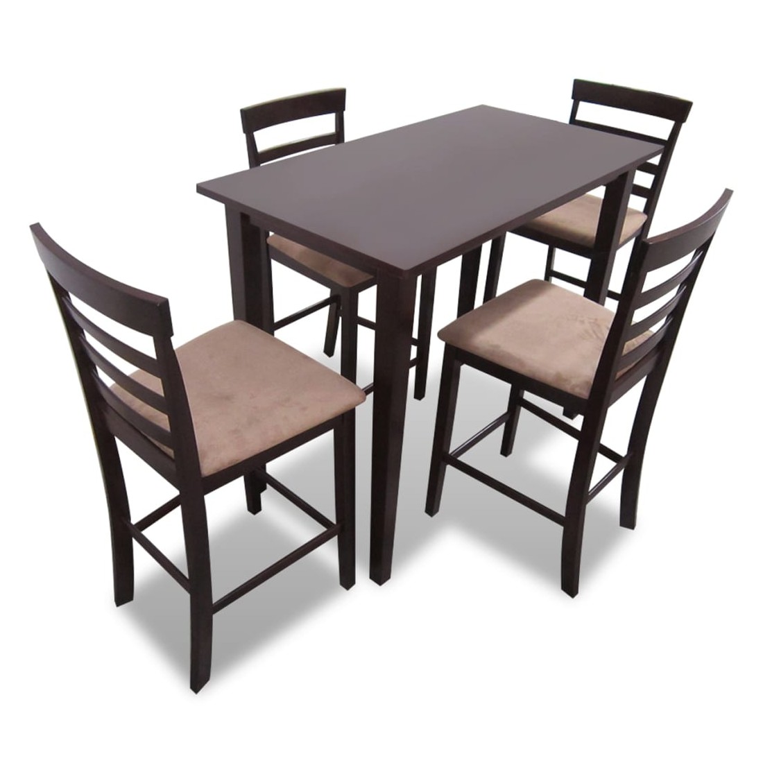 Ce set composé d'une élégante table et de 4 chaises de bar stylées sera un excellent ajout dans votre cuisine ou salle à manger. Le design élégant de ce set en fait un accessoire indémodable pour votre maison. Grâce au plateau plaqué en bois véritable et aux pieds en hévéa, cette table de haute qualité est facile à nettoyer. Les chaises ont un cadre robuste et durable en hévéa et grâce à leur assise rembourrée en mousse, elles sont très confortables. Cet ensemble de meubles ajoutera une touche rustique charmante à votre espace de vie! La livraison comprend 1 table et 4 chaises de bar marron.
