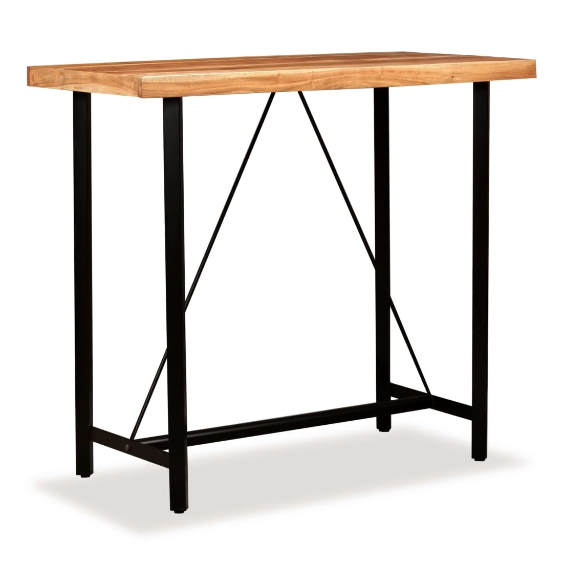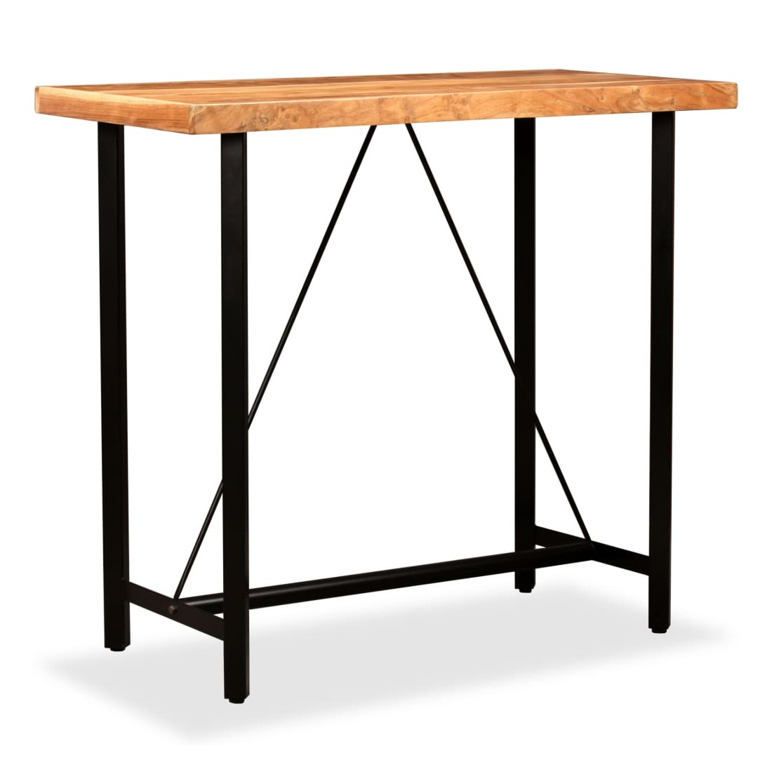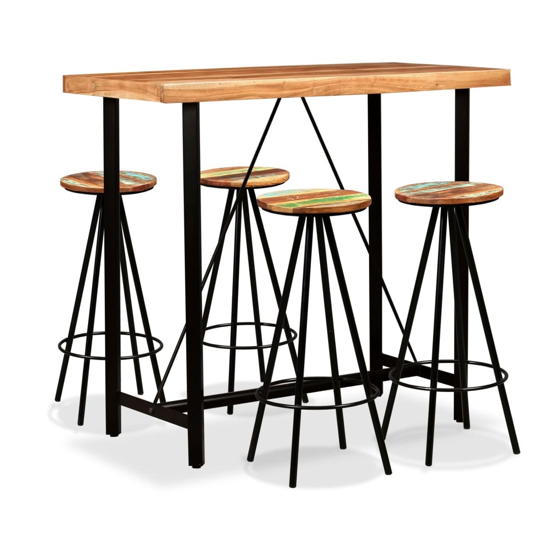 Cet ensemble de bar cool a un style industriel et sera un supplément distinctif à n'importe quelle maison, bar ou restaurant. La table de bar est en bois d'acacia massif qui est durable, stable et facile à nettoyer. Elle est entièrement faite à la main et les beaux grains de bois rendent chaque meuble unique et légèrement différent l'un de l'autre. Les pieds en acier fort rendent la table de bar très robuste et durable et ajoutent à son style industriel spectaculaire. Les tabourets de bar sont faits de bois de récupération massif, ce qui signifie qu'ils ont les caractéristiques de différents bois comme le teck, le bois de manguier, l'acacia, etc. Le bois de récupération est solide, stable, durable et beau. Les signes d'usure donnent à chaque pièce un aspect unique et les pieds en acier s'ajoutent au style industriel spectaculaire. Chaque étape du processus de construction est réalisée avec le plus grand soin, que ce soit la recombinaison, le polissage, la peinture ou le laquage. La livraison comprend 1 table de bar et 4 tabourets de bar. L'assemblage est facile. Remarque importante : Les grains et les couleurs du bois peuvent varier d'une pièce à l'autre, ce qui rend chaque pièce unique et légèrement différente de la suivante ; la livraison est aléatoire.