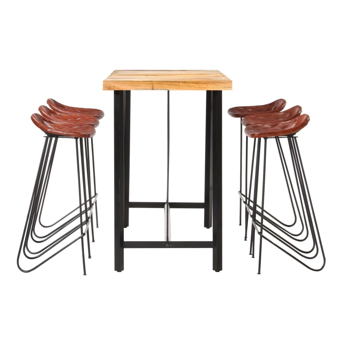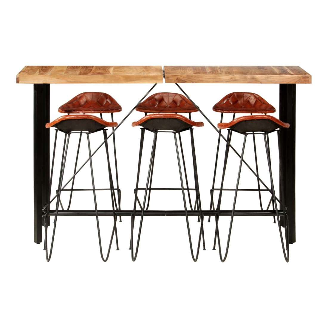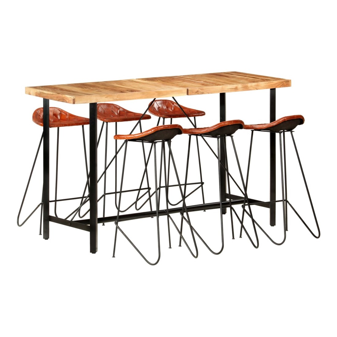 Ensemble de bar 7 pcs Bois d'acacia solide et cuir véritable