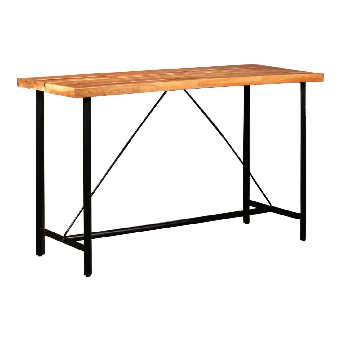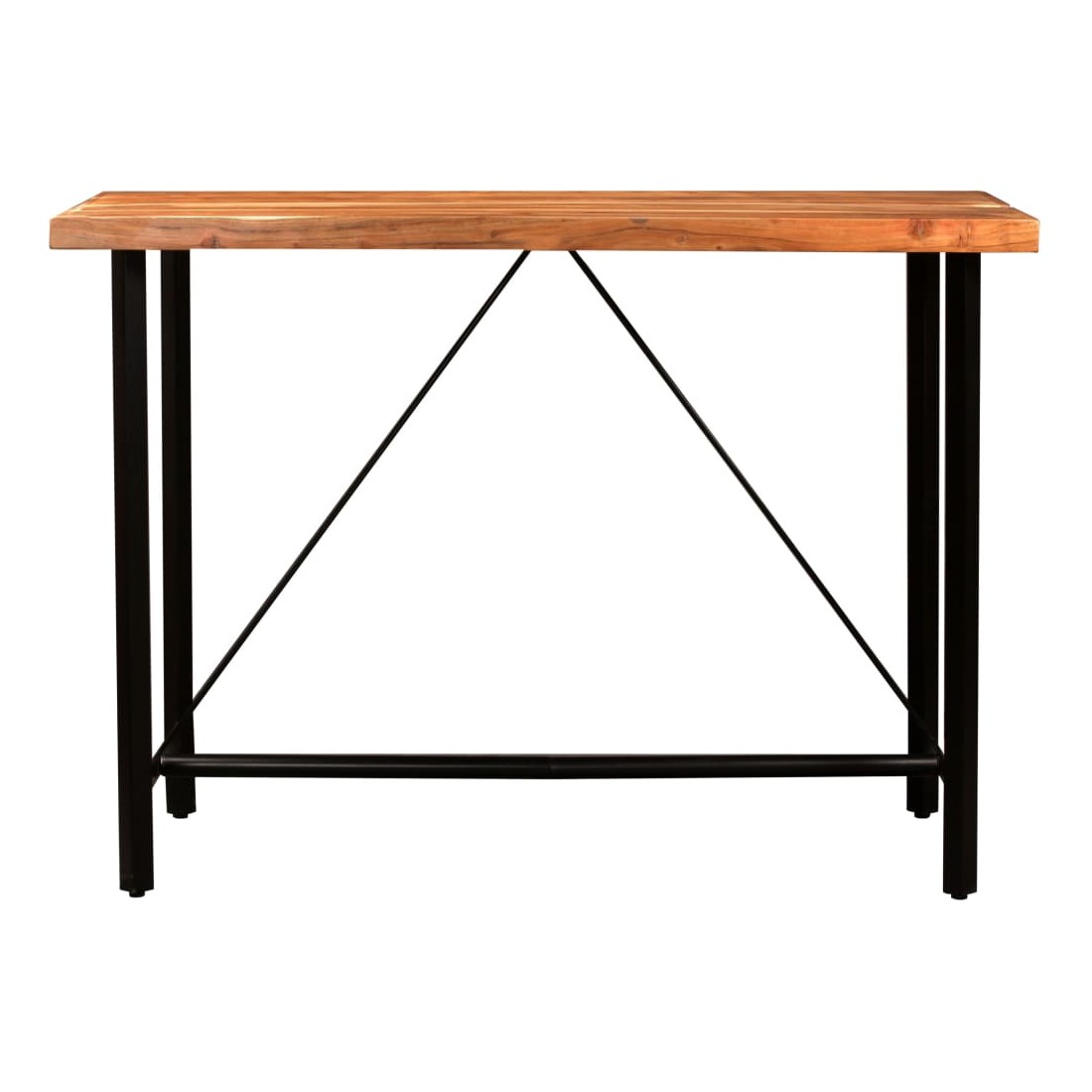 vidaXLCet ensemble de bar attrayant a un style industriel et sera un supplément distinctif à n'importe quelle maison, ou à n'importe quel bar ou restaurant. La table de bar est en bois d'acacia massif qui est durable, stable et facile à nettoyer. Les pieds en acier fort rendent la table de bar très robuste et durable et ajoutent à son style industriel spectaculaire. L'artisanat parfait garantit que chaque étape du processus est effectuée avec le plus grand soin, que ce soit le polissage ou le laquage. Les chaises de bar au look emblématique sont rembourrées de cuir véritable, douces au toucher et rendant la chaise extrêmement durable. Le siège en cuir de chèvre doux avec de jolies coutures en forme de diamant rend le siège une expérience confortable, tandis que les pieds en fer solides avec repose-pieds font le tabouret stable et durable. L'ensemble de bar est facile à assembler. Remarque importante : les grains et les couleurs du bois peuvent varier d'une pièce à l'autre, ce qui rend chaque pièce unique ; la livraison est aléatoire.