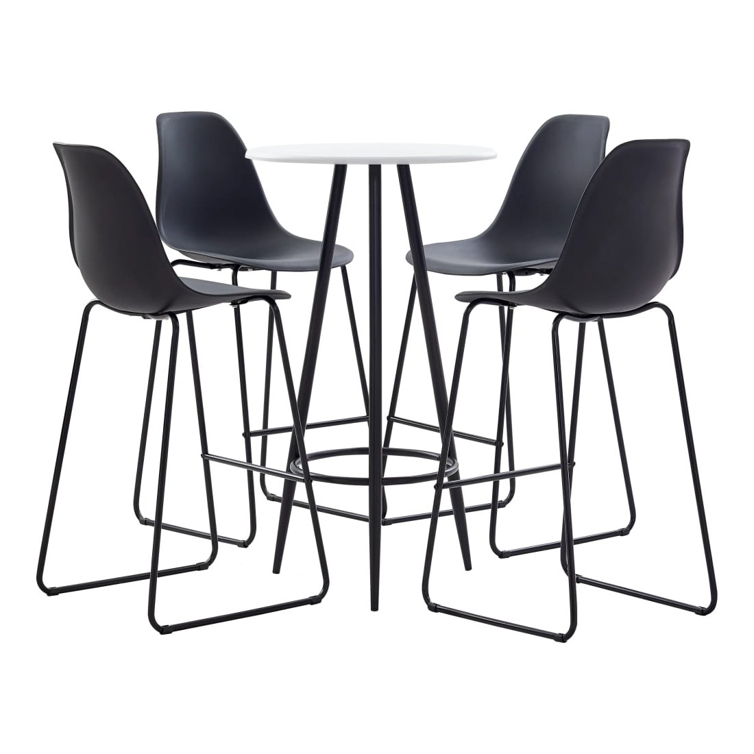 Avec un design moderne et contemporain, notre ensemble de bar est idéal pour les maisons, jardins, bars, pubs ou restaurants modernes. Son design épuré et contemporain complétera toute décoration intérieure. Le dessus de table est en MDF qui est facile à nettoyer. Le cadre en acier enduit de poudre ajoute à la stabilité et à la solidité de la table de bar. Les chaises de bar ont une assise ergonomique avec dossier intégré dans un look moderne et courbé. De plus, elles sont faciles à monter. Notre ensemble de chaises de bar est idéal pour savourer un verre de vin au bar, manger quelque chose au comptoir ou pour l'utiliser comme siège supplémentaire lorsque vous avez des invités. La livraison comprend une table de bar et 4 chaises de bar.