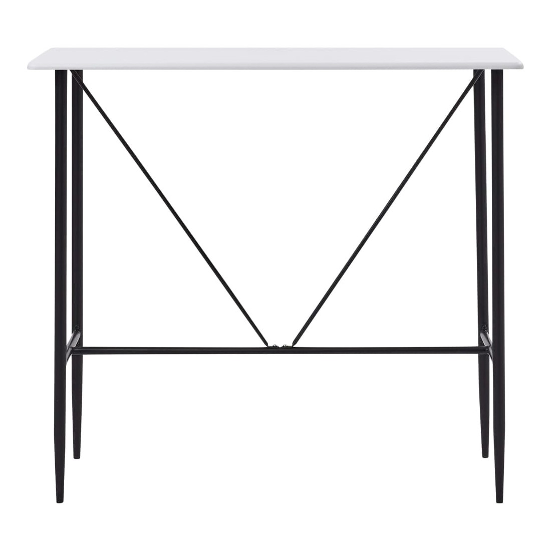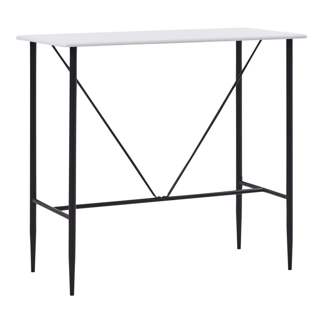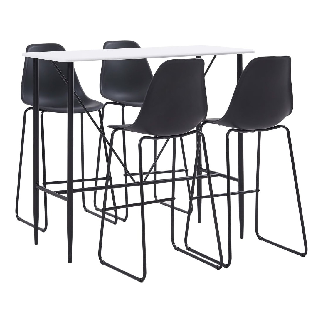 Avec un design moderne et contemporain, notre ensemble de bar est idéal pour les maisons, jardins, bars, pubs ou restaurants modernes. Son design épuré et contemporain complétera toute décoration intérieure. Le dessus de table est en MDF qui est facile à nettoyer. Le cadre en acier enduit de poudre ajoute à la stabilité et à la solidité de la table de bar. Les chaises de bar ont une assise ergonomique avec dossier intégré dans un look moderne et courbé. De plus, elles sont faciles à monter. Notre ensemble de bar est idéal pour savourer un verre de vin au bar, manger quelque chose au comptoir ou pour l'utiliser comme siège supplémentaire lorsque vous avez des invités. La livraison comprend une table de bar et 4 chaises de bar.
