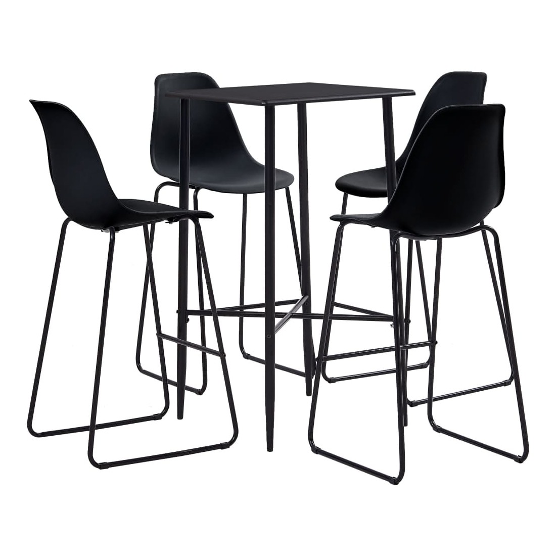 Avec un design moderne et contemporain, notre ensemble de bar est idéal pour les maisons, jardins, bars, pubs ou restaurants modernes. Son design épuré et contemporain complétera toute décoration intérieure. Le dessus de table est en MDF qui est facile à nettoyer. Le cadre en acier enduit de poudre ajoute à la stabilité et à la solidité de la table de bar. Les chaises de bar ont une assise ergonomique avec dossier intégré dans un look moderne et courbé. De plus, elles sont faciles à monter. Notre ensemble de bar est idéal pour savourer un verre de vin au bar, manger quelque chose au comptoir ou pour l'utiliser comme siège supplémentaire lorsque vous avez des invités. La livraison comprend une table de bar et 4 chaises de bar.
