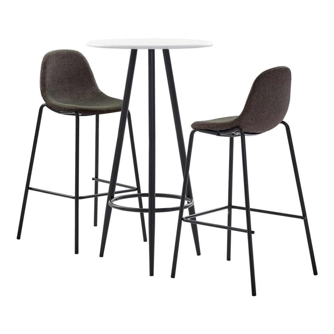 Avec un design moderne et contemporain, notre ensemble de bar est idéal pour les maisons, jardins, bars, pubs ou restaurants modernes. Son design épuré et contemporain complétera toute décoration intérieure. Le dessus de table est en MDF qui est facile à nettoyer. Le cadre en acier enduit de poudre ajoute à la stabilité et à la solidité de la table de bar. Les chaises de bar ont une assise ergonomique avec dossier intégré dans un look moderne et courbé. De plus, elles sont faciles à monter. Notre ensemble de bar est idéal pour savourer un verre de vin au bar, manger quelque chose au comptoir ou pour l'utiliser comme siège supplémentaire lorsque vous avez des invités. La livraison comprend une table de bar et 2 chaises de bar.
