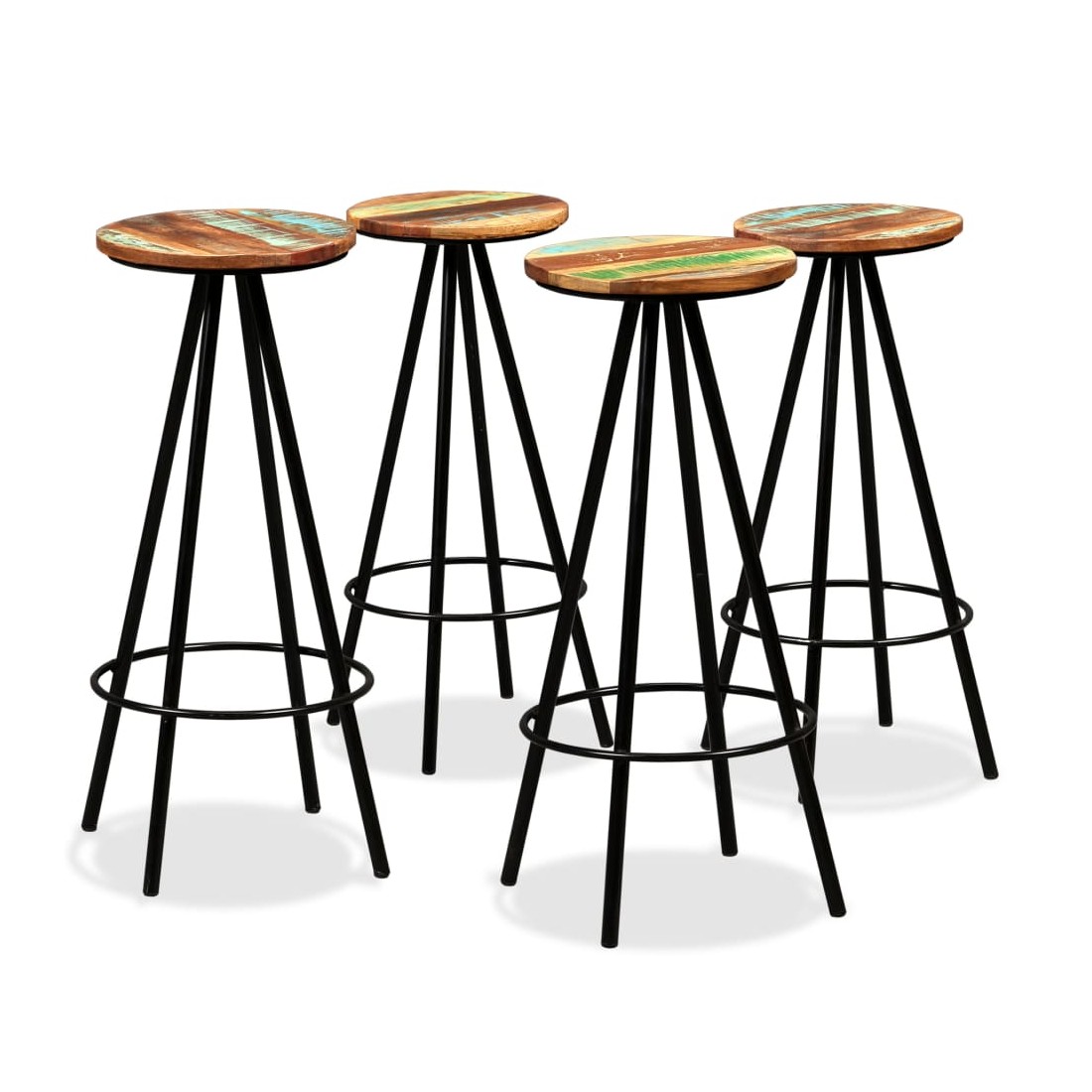 Cet ensemble de bar cool a un style industriel et sera un supplément distinctif à n'importe quelle maison, bar ou restaurant. La table de bar est en bois d'acacia massif qui est durable, stable et facile à nettoyer. Elle est entièrement faite à la main et les beaux grains de bois rendent chaque meuble unique et légèrement différent l'un de l'autre. Les pieds en acier fort rendent la table de bar très robuste et durable et ajoutent à son style industriel spectaculaire. Les tabourets de bar sont faits de bois de récupération massif, ce qui signifie qu'ils ont les caractéristiques de différents bois comme le teck, le bois de manguier, l'acacia, etc. Le bois de récupération est solide, stable, durable et beau. Les signes d'usure donnent à chaque pièce un aspect unique et les pieds en acier s'ajoutent au style industriel spectaculaire. Chaque étape du processus de construction est réalisée avec le plus grand soin, que ce soit la recombinaison, le polissage, la peinture ou le laquage. Remarque importante : les couleurs et les grains de bois peuvent varier d'une pièce à l'autre, ce qui rend chaque pièce unique et légèrement différente l'une de l'autre ; la livraison est aléatoire.