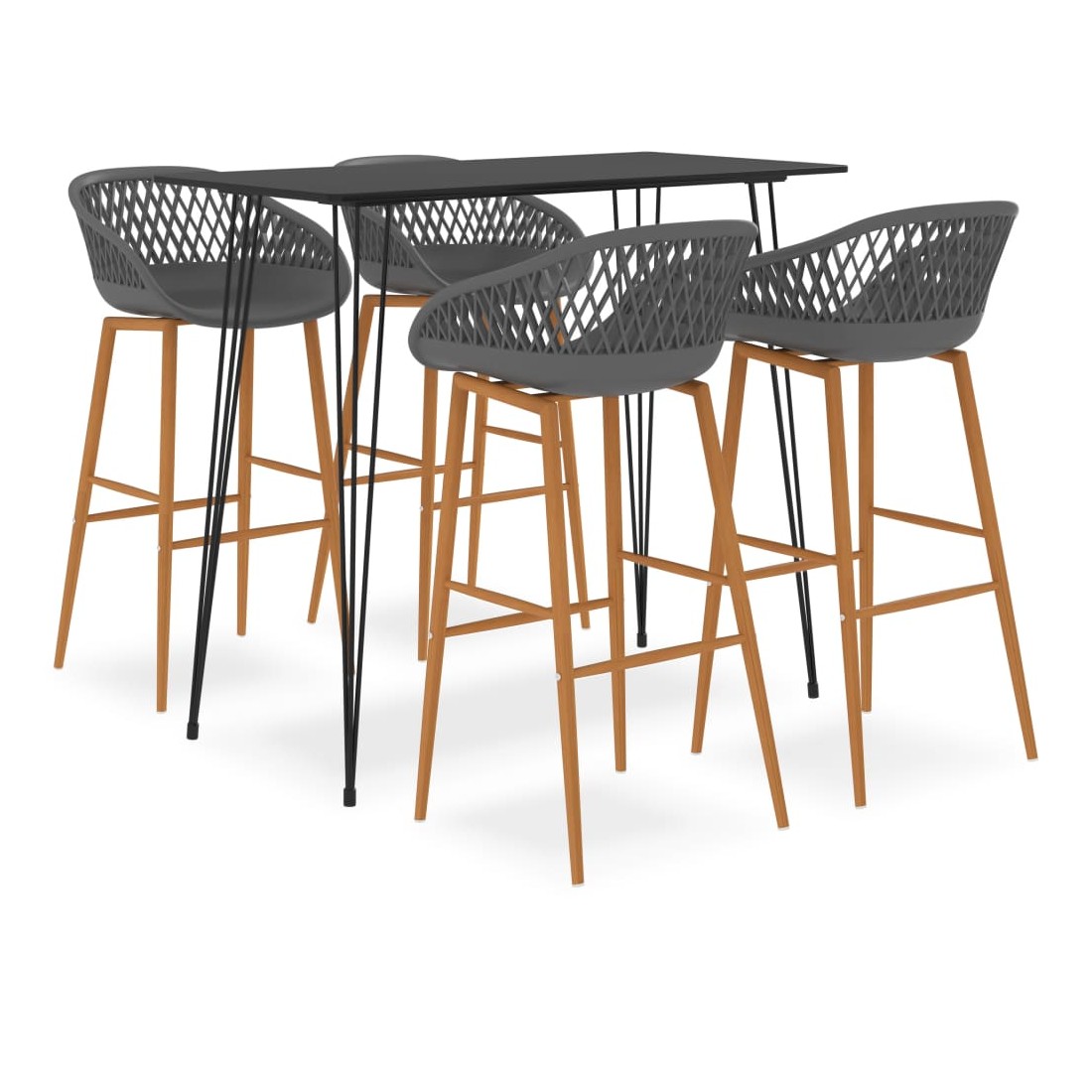 Avec un design moderne et contemporain, notre ensemble de bar est idéal pour les maisons, jardins, bars, pubs ou restaurants modernes. Son design épuré et contemporain complétera toute décoration intérieure. Le dessus de table est en MDF, facile à nettoyer. Le cadre métallique enduit de poudre ajoute à la stabilité et à la robustesse de la table de bar. Les tabourets de bar ont un siège ergonomique avec un dossier bas intégré avec un aspect de maille. Fabriquées en PP robuste et soutenues par des solides pieds en métal avec une impression par transfert de chaleur en aspect bois, ces chaises de comptoir sont robustes et durables.