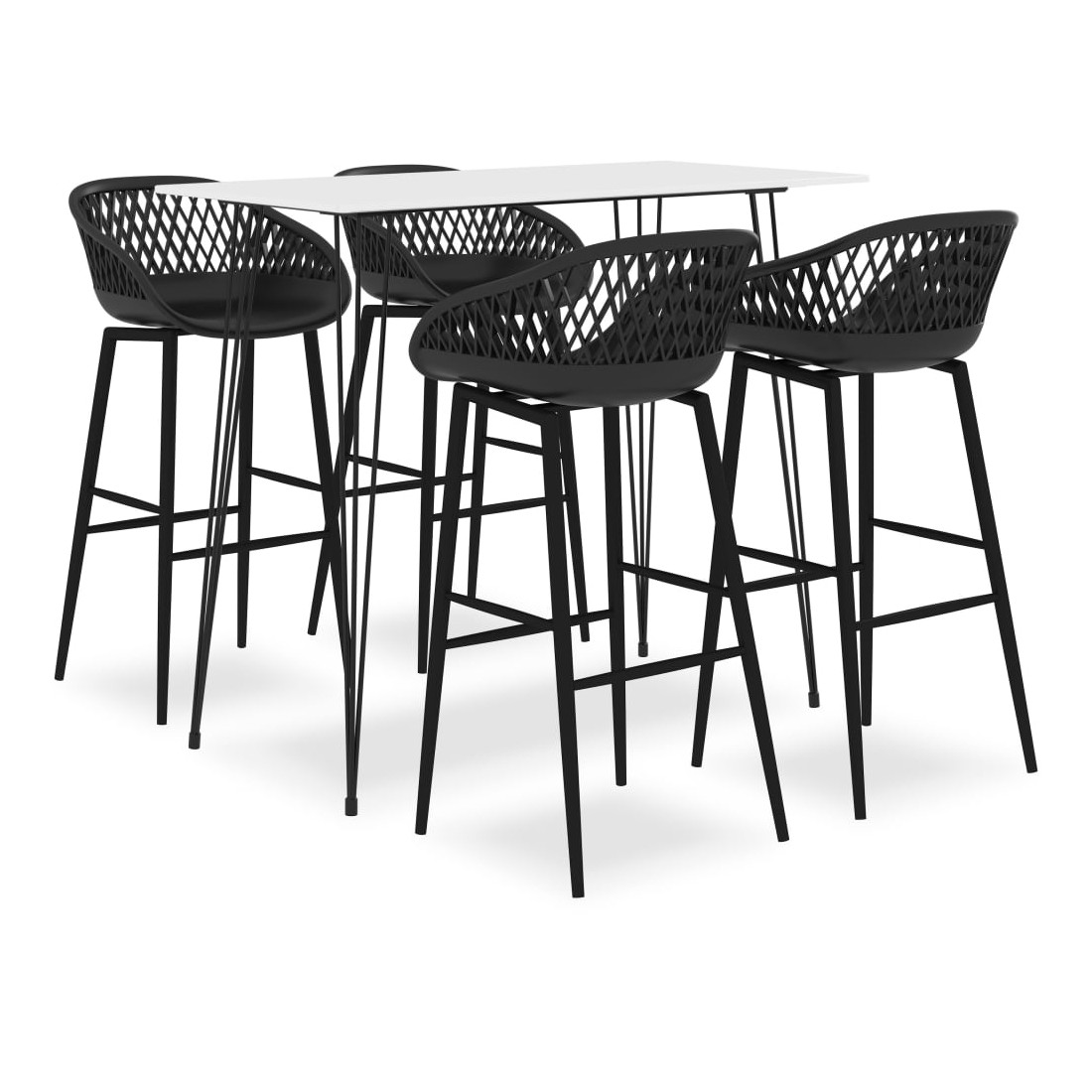 Avec un design moderne et contemporain, notre ensemble de bar est idéal pour les maisons, jardins, bars, pubs ou restaurants modernes. Son design épuré et contemporain complétera toute décoration intérieure. Le dessus de table est en MDF, facile à nettoyer. Le cadre métallique enduit de poudre ajoute à la stabilité et à la robustesse de la table de bar. Les tabourets de bar ont un siège ergonomique avec un dossier bas intégré avec un aspect de maille. Fabriquées en PP robuste et soutenues par des solides pieds en métal enduit de poudre, ces chaises de comptoir sont robustes et durables.