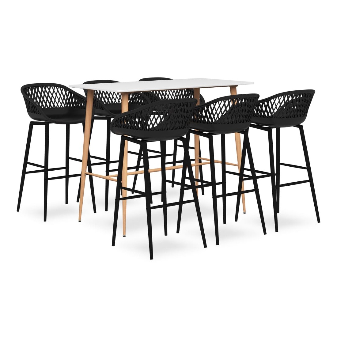 Avec un design moderne et contemporain, notre ensemble de bar est idéal pour les maisons, jardins, bars, pubs ou restaurants modernes. Son design épuré et contemporain complétera toute décoration intérieure. Notre table de comptoir dispose d’un dessus en MDF durable et de solides pieds en métal avec un aspect de bois. Les tabourets de bar ont un siège ergonomique avec un dossier bas intégré avec un aspect de maille. Fabriquées en PP robuste et soutenues par des solides pieds en métal enduit de poudre, ces chaises de comptoir sont robustes et durables.