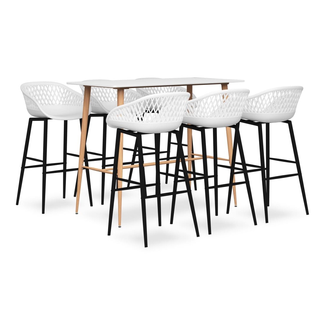 Avec un design moderne et contemporain, notre ensemble de bar est idéal pour les maisons, jardins, bars, pubs ou restaurants modernes. Son design épuré et contemporain complétera toute décoration intérieure. Notre table de comptoir dispose d’un dessus en MDF durable et de solides pieds en métal avec un aspect de bois. Les tabourets de bar ont un siège ergonomique avec un dossier bas intégré avec un aspect de maille. Fabriquées en PP robuste et soutenues par des solides pieds en métal enduit de poudre, ces chaises de comptoir sont robustes et durables.