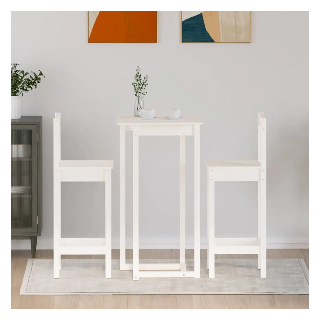 Prenez une gorgée de votre verre de vin préféré ou profitez d'un bon repas avec votre famille et vos amis autour de ce magnifique ensemble de bar en bois ! Le bois de pin solide est un beau matériau naturel. Le bois de pin a un grain droit et les nœuds donnent au matériau son aspect caractéristique et rustique.Cadre stable : le cadre en bois assure robustesse et stabilité.Dessus robuste : la table de bar de l'ensemble de meubles est dotée d'un dessus robuste, parfait pour placer vos boissons, vos aliments et autres objets décoratifs. Remarque :Chaque produit est livré avec un manuel de montage dans la boîte pour un montage facile.