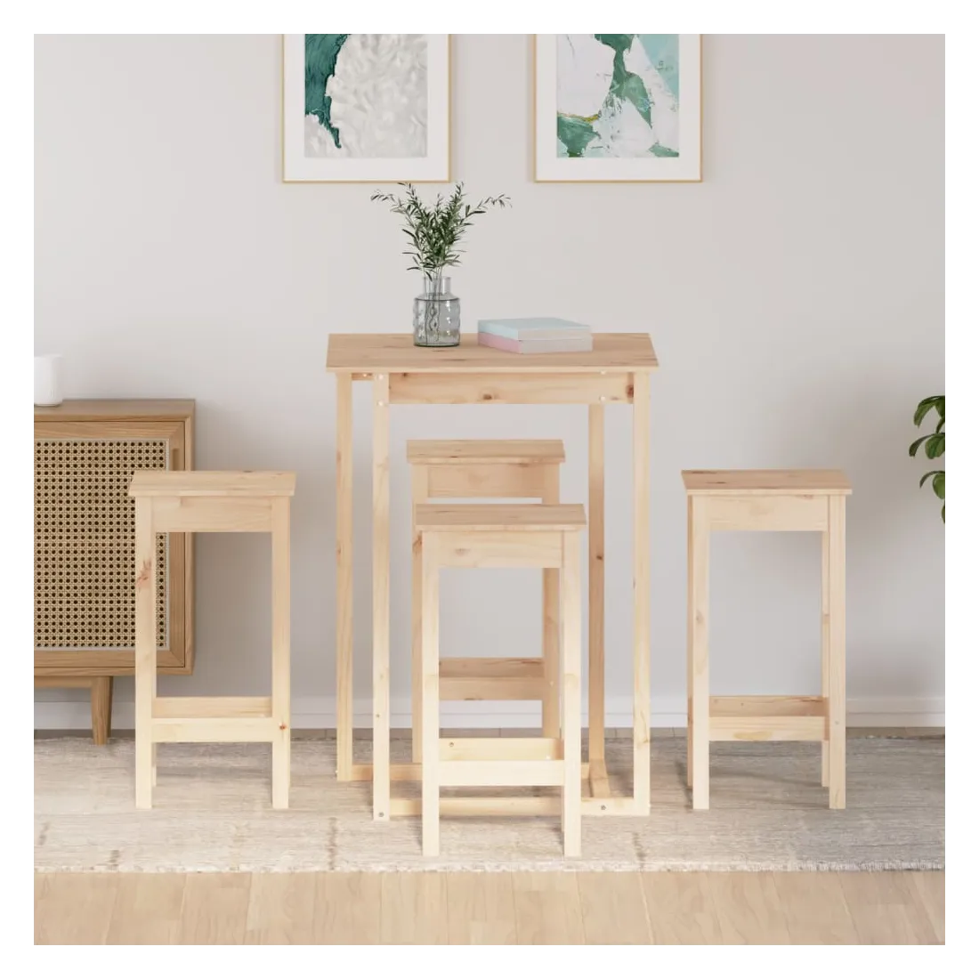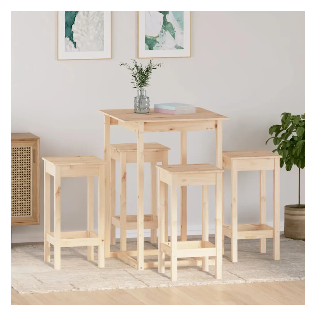 Ensemble de bar 5 pcs Bois de pin massif