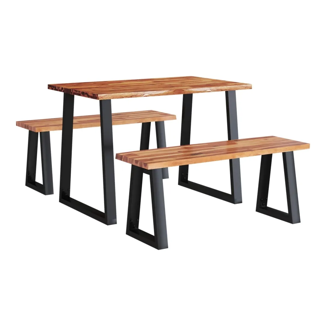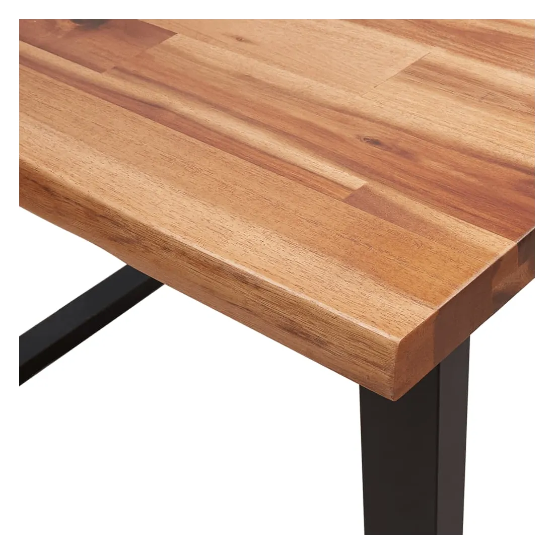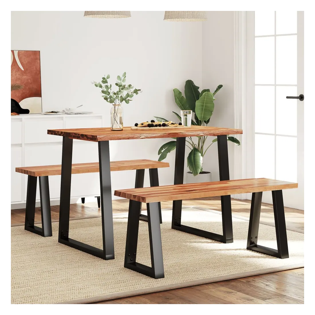Doté d'un design élégant, cet ensemble à manger deviendra le point central de votre salle à manger ou de votre cuisine. Bois d'acacia massif : le banc et la table à manger sont fabriqués en bois d'acacia massif. Le bois d'acacia massif est un beau matériau naturel. Le bois d'acacia est un bois dur tropical, dense, robuste et durable.Bord vivant : le bord vivant du bois qui suit la forme naturelle de l'arbre augmente la beauté de l'ensemble de meubles.Structure stable : les pieds en forme de U en acier revêtu de poudre ajoutent un style industriel à votre intérieur tout en assurant la stabilité d'ensemble à manger.Dessus de table pratique : le dessus de table robuste de la table de cuisine est parfait pour placer des repas, des boissons et d'autres objets décoratifs.
