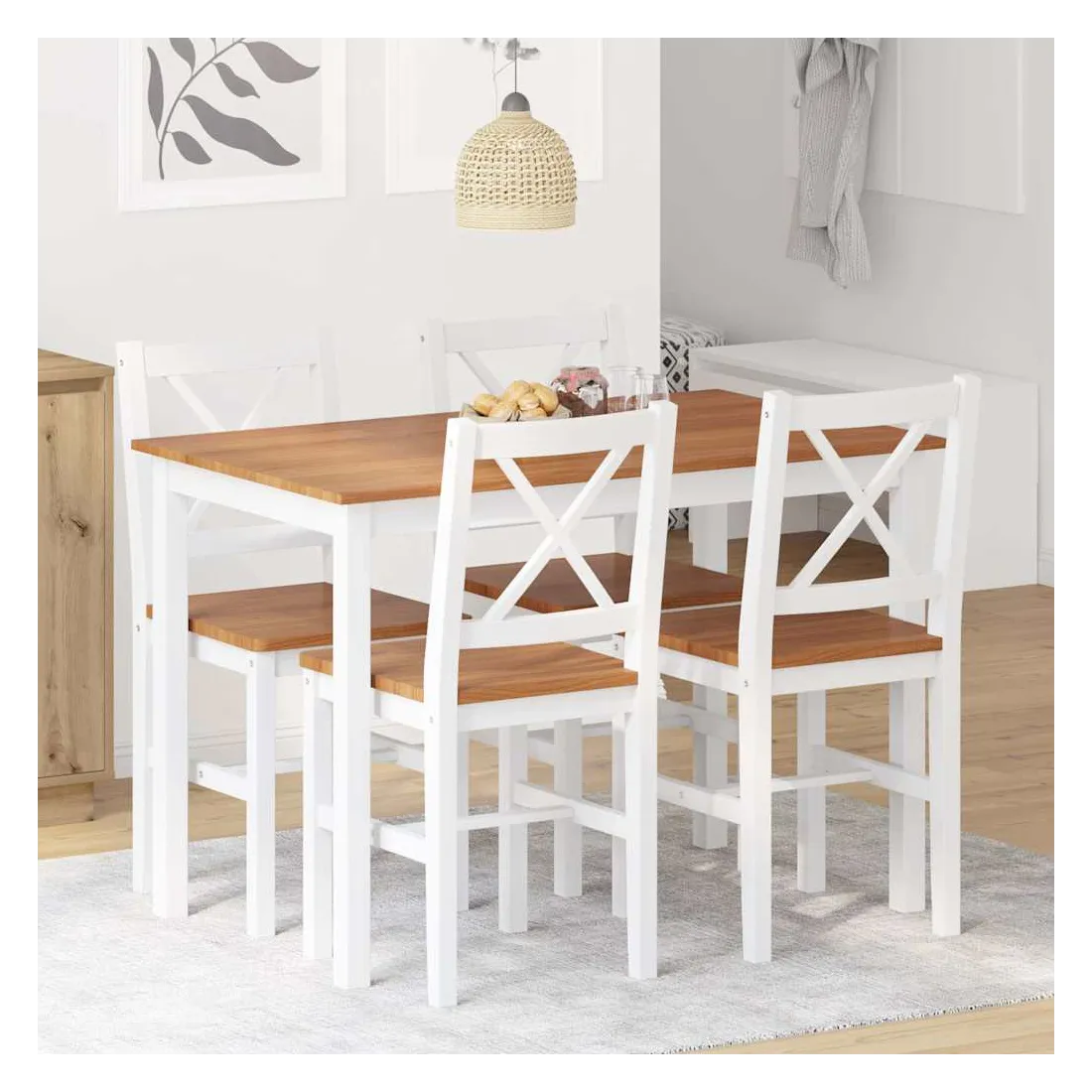 Cet ensemble de salle à manger en bois de 5 pièces, conçu avec des lignes épurées et simples, est un excellent choix pour votre salle à manger ou cuisine. L'élégance simple de cet ensemble de salle à manger rendra les dîners quotidiens spéciaux. Cet ensemble de salle à manger est fabriqué en bois solide avec une finition colorée attrayante pour un aspect élégant, ce qui apportera certainement des années de service. La livraison inclut quatre chaises et une table.