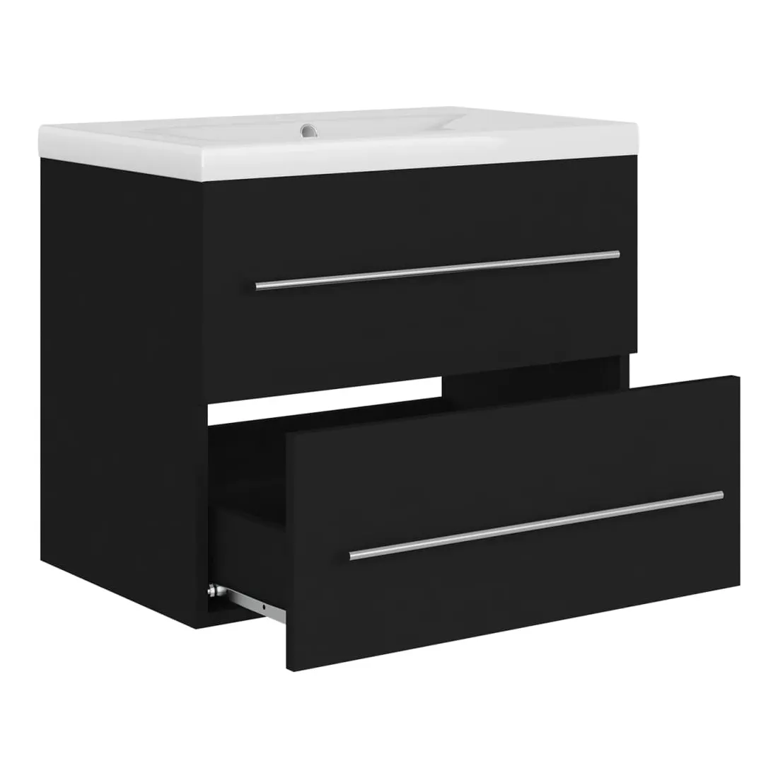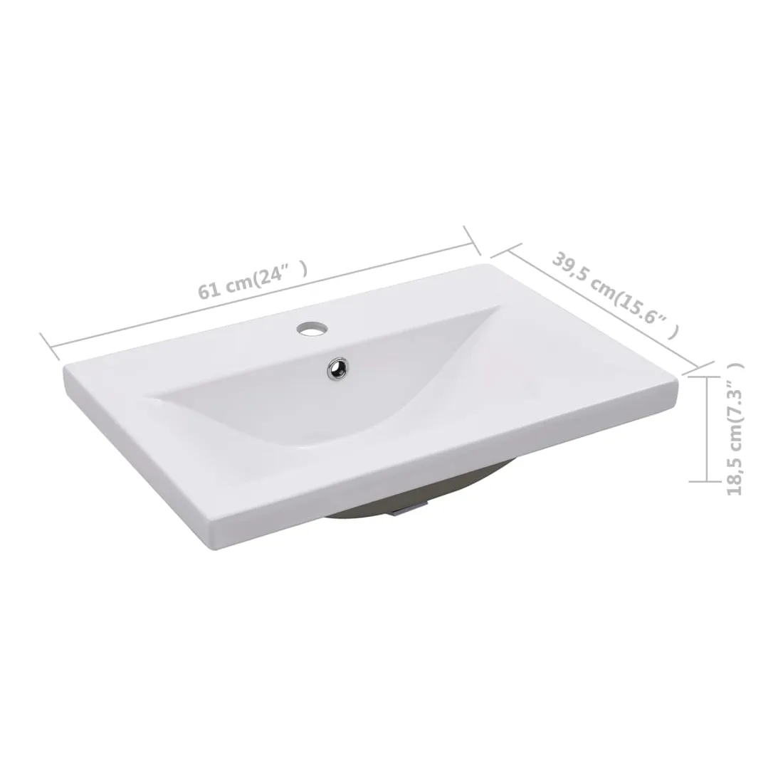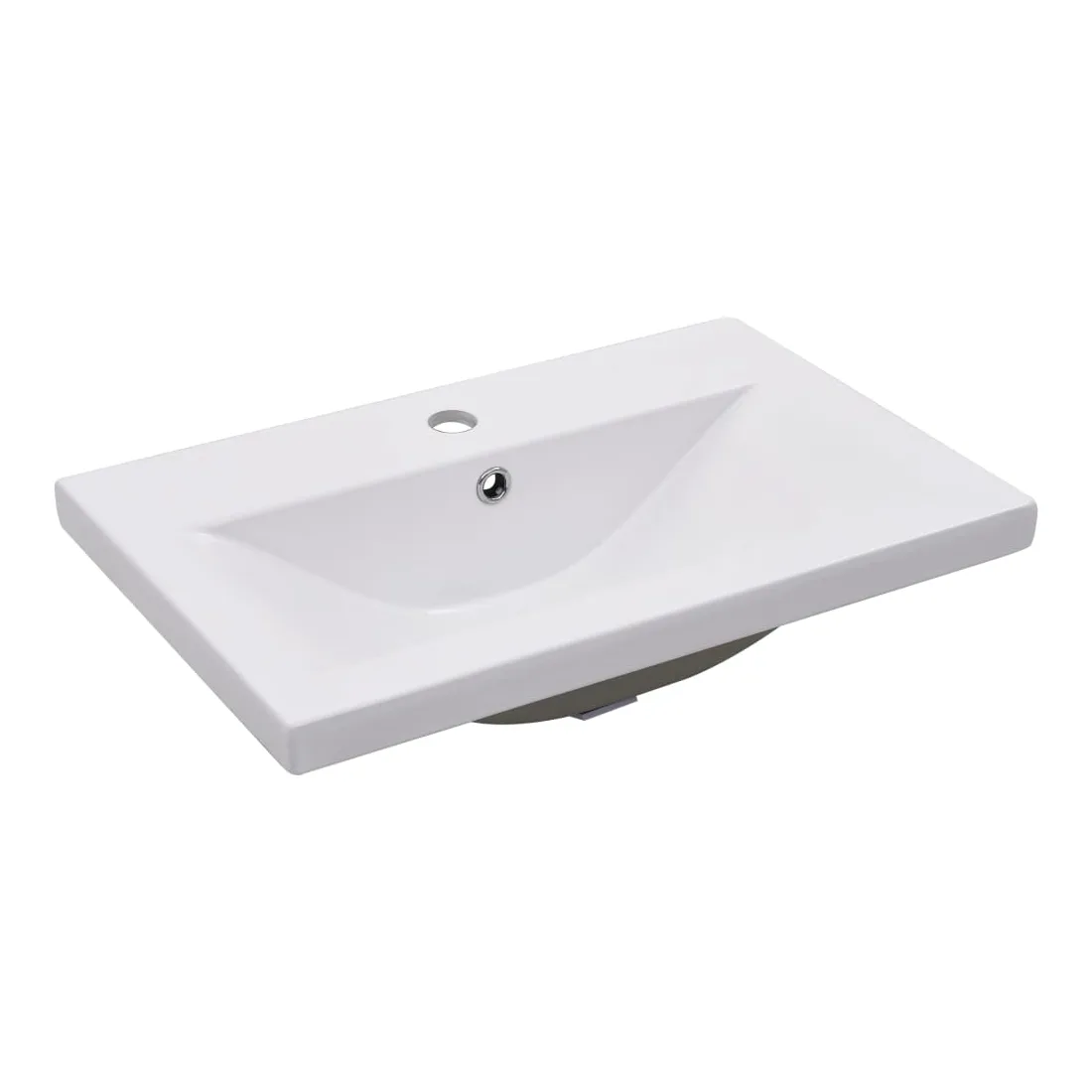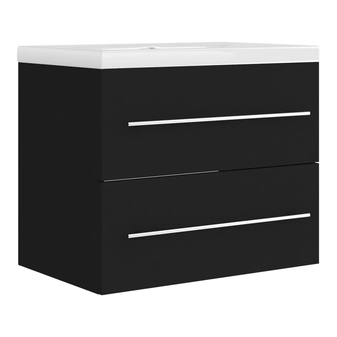 Cette armoire d'évier avec lavabo intégré s'agence parfaitement à votre salle de bain ou toilette avec un aspect saisissant et bien rangé. L'armoire est en aggloméré, ce qui la rend robuste et stable. L'armoire de rangement a 1 tiroir, offrant un espace de rangement suffisant pour ranger les objets de votre salle de bain. Elle s'intègre parfaitement sous l'évier et rend le rangement de la salle de bain très pratique. Fabriqué en céramique, le lavabo peut non seulement servir de récipient pour un usage quotidien, mais également d'ornement dans votre espace de vie. Grâce à son design avant-gardiste et contemporain, ce lavabo s'adaptera à n'importe quel décor. Un trop-plein est également équipé pour vidanger l'eau lorsqu'il est trop plein. Sa surface vitrée lui confère un design à la fois moderne et élégant. De plus, l'armoire et le lavabo sont faciles à nettoyer avec un chiffon humide. Veuillez noter que le robinet et le drain ne sont pas inclus dans la livraison.