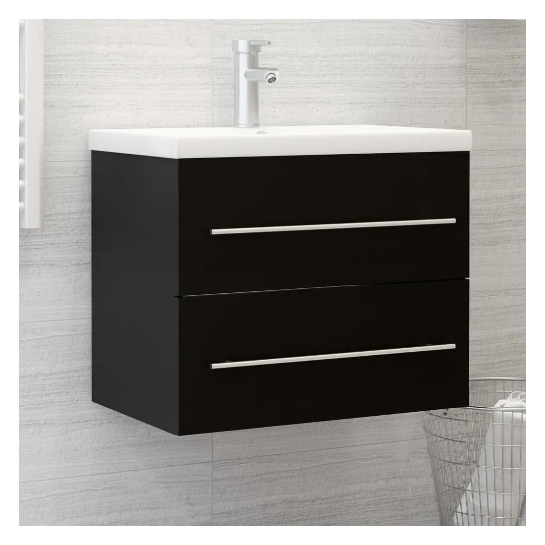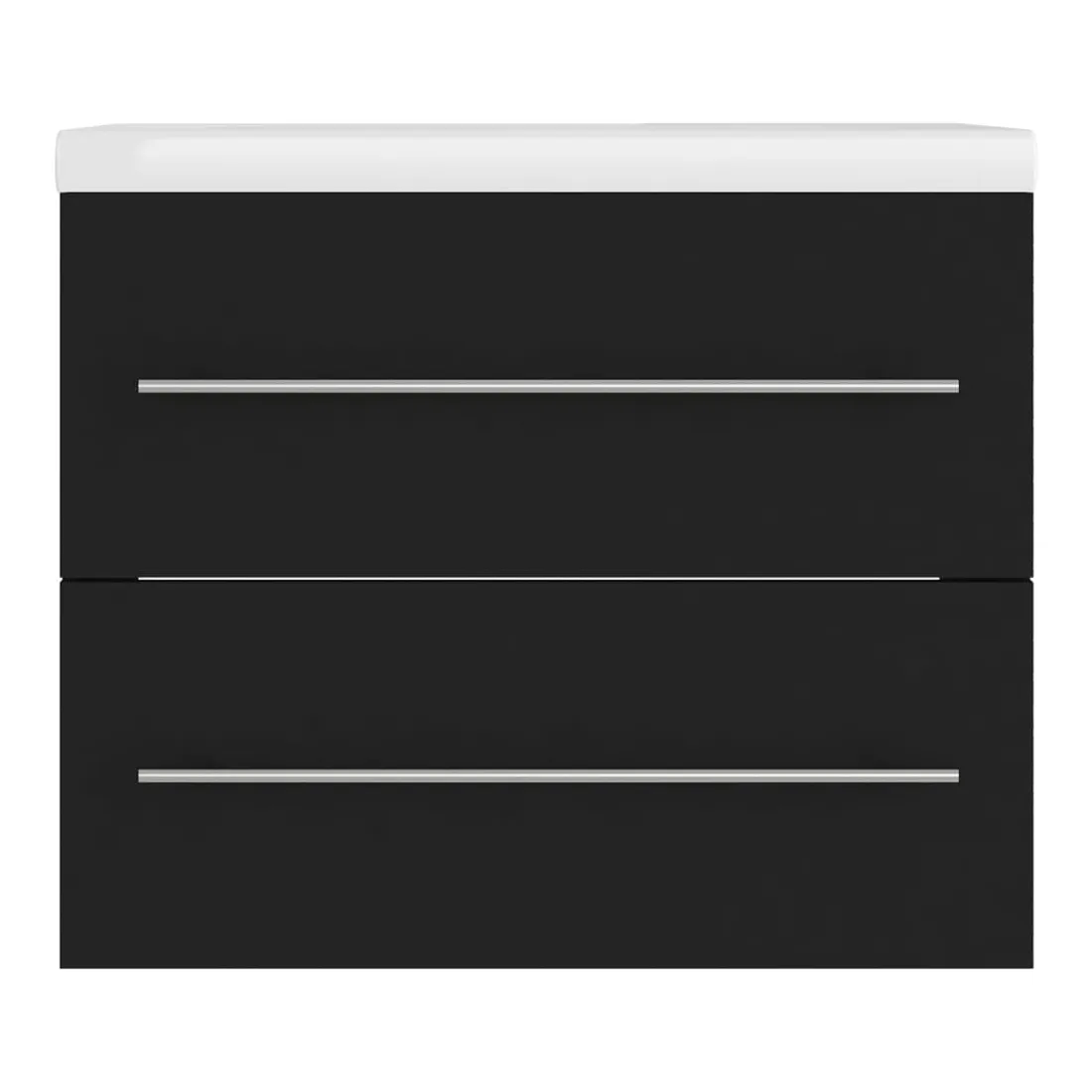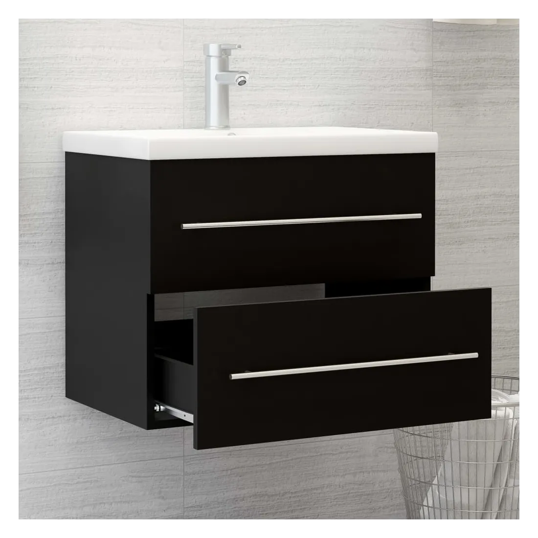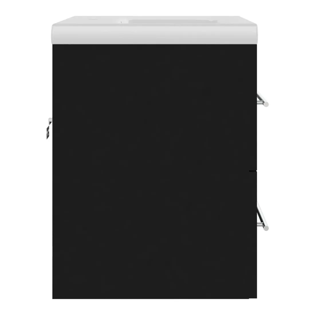 Cette armoire d'évier avec lavabo intégré s'agence parfaitement à votre salle de bain ou toilette avec un aspect saisissant et bien rangé. L'armoire est en aggloméré, ce qui la rend robuste et stable. L'armoire de rangement a 1 tiroir, offrant un espace de rangement suffisant pour ranger les objets de votre salle de bain. Elle s'intègre parfaitement sous l'évier et rend le rangement de la salle de bain très pratique. Fabriqué en céramique, le lavabo peut non seulement servir de récipient pour un usage quotidien, mais également d'ornement dans votre espace de vie. Grâce à son design avant-gardiste et contemporain, ce lavabo s'adaptera à n'importe quel décor. Un trop-plein est également équipé pour vidanger l'eau lorsqu'il est trop plein. Sa surface vitrée lui confère un design à la fois moderne et élégant. De plus, l'armoire et le lavabo sont faciles à nettoyer avec un chiffon humide. Veuillez noter que le robinet et le drain ne sont pas inclus dans la livraison.