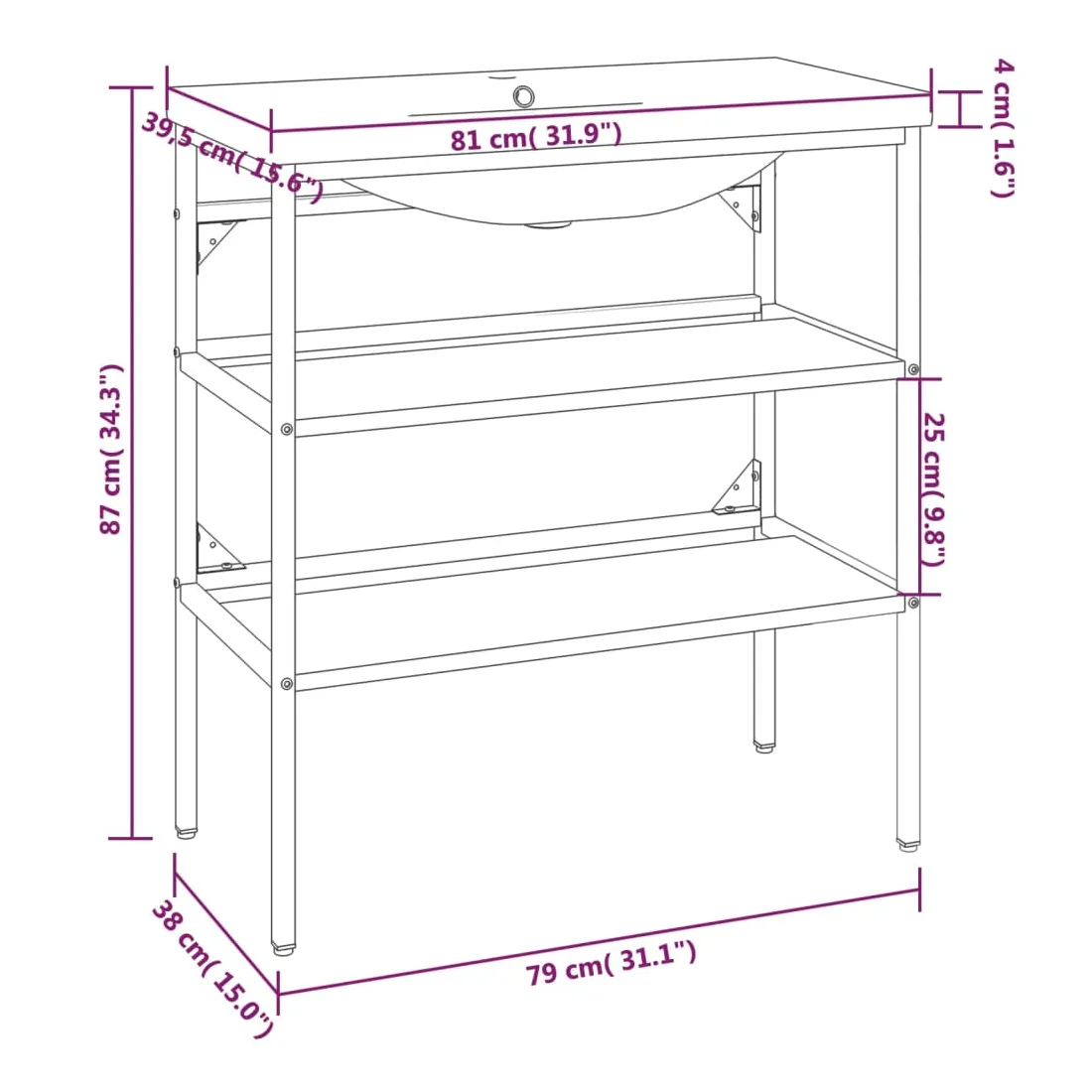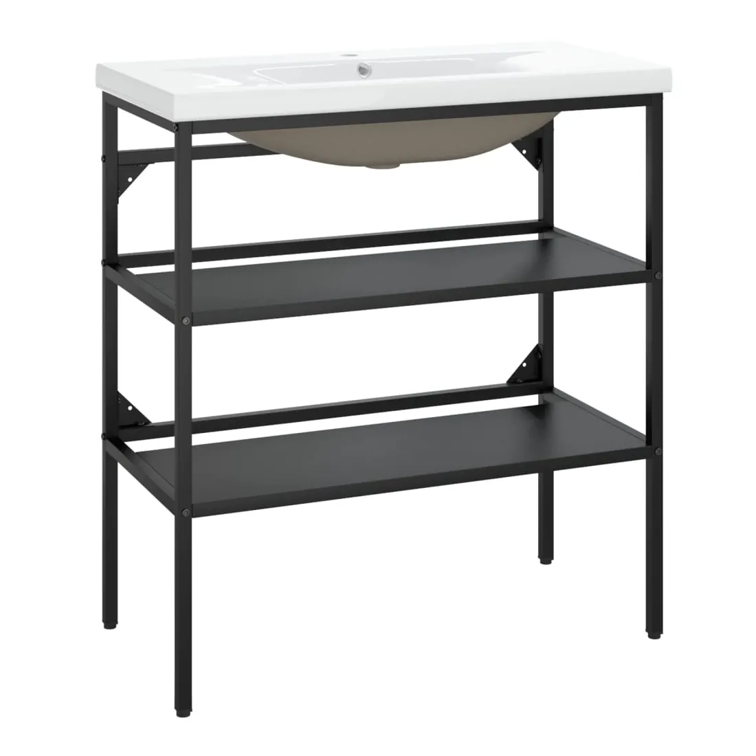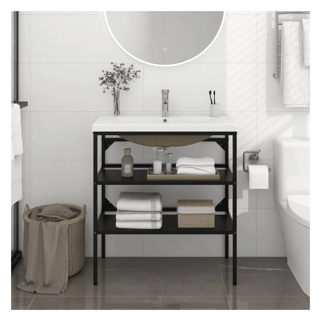 Ce cadre de lavabo de salle de bain avec une vasque à encastrer s'intègre parfaitement à votre salle de bain ou à votre salle d'eau, avec un aspect propre et ordonné. Le support de lavage est fabriqué en fer enduit de poudre, ce qui le rend stable et durable. Ce cadre de lavabo permet d'accéder facilement aux serviettes et aux paniers et crée un espace plus vaste qu'un rangement fermé. Fabriqué en céramique, le bassin peut non seulement servir de récipient pour un usage quotidien mais aussi d'ornement dans votre espace de vie. Grâce à son design tendance et contemporain, ce lavabo s'adaptera à tout décor. Un trop-plein est également prévu pour vidanger l'eau lorsque le lavabo est trop plein. Sa surface émaillée lui confère un design moderne et élégant. De plus, le cadre de lavabo et la