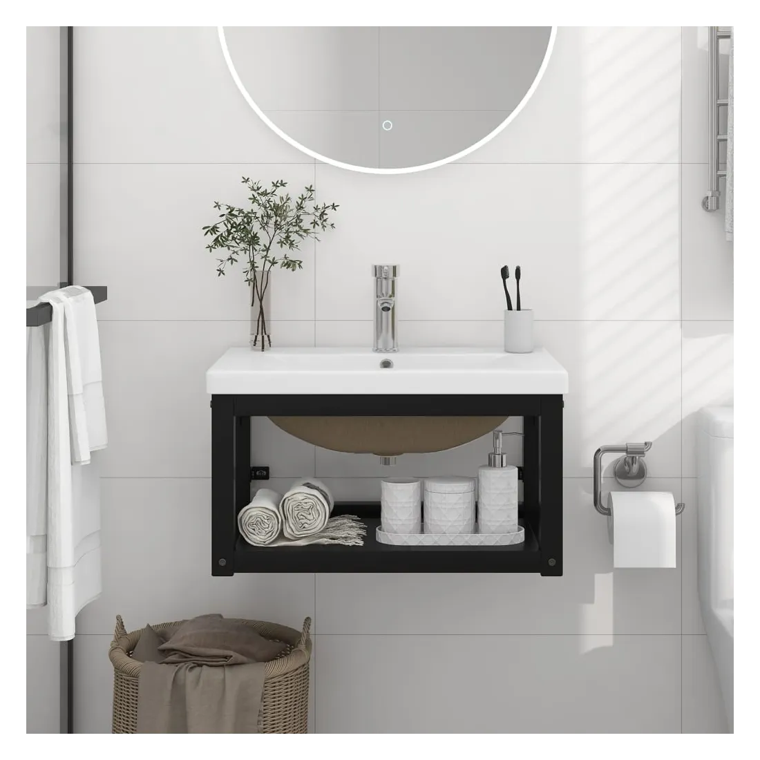 Cadre de lavabo de salle de bain vasque à encastrer Noir Fer