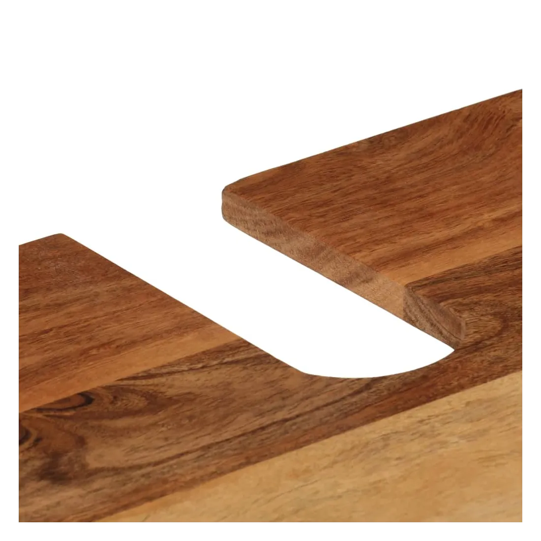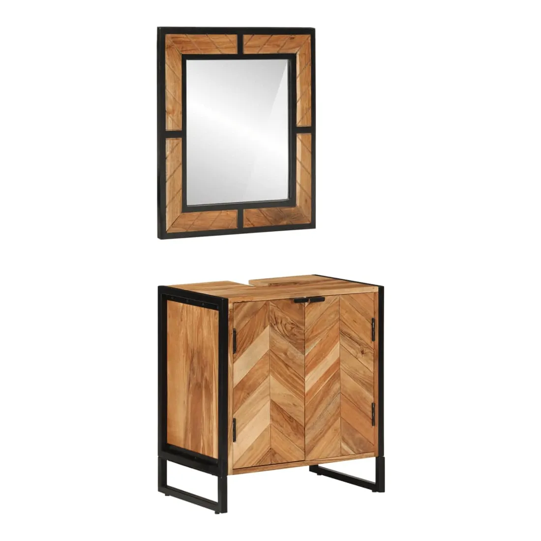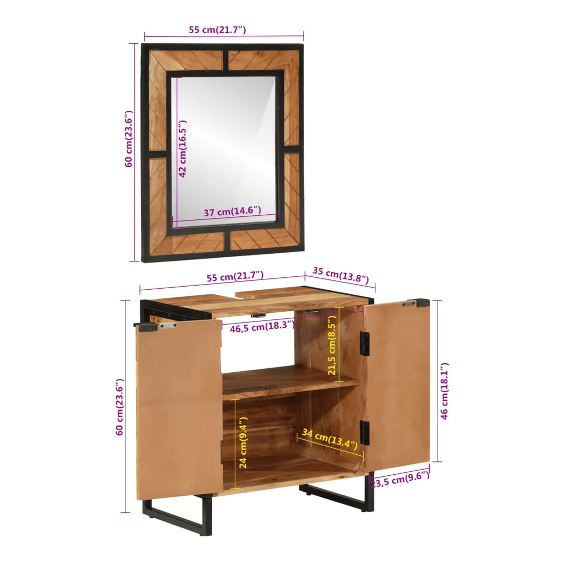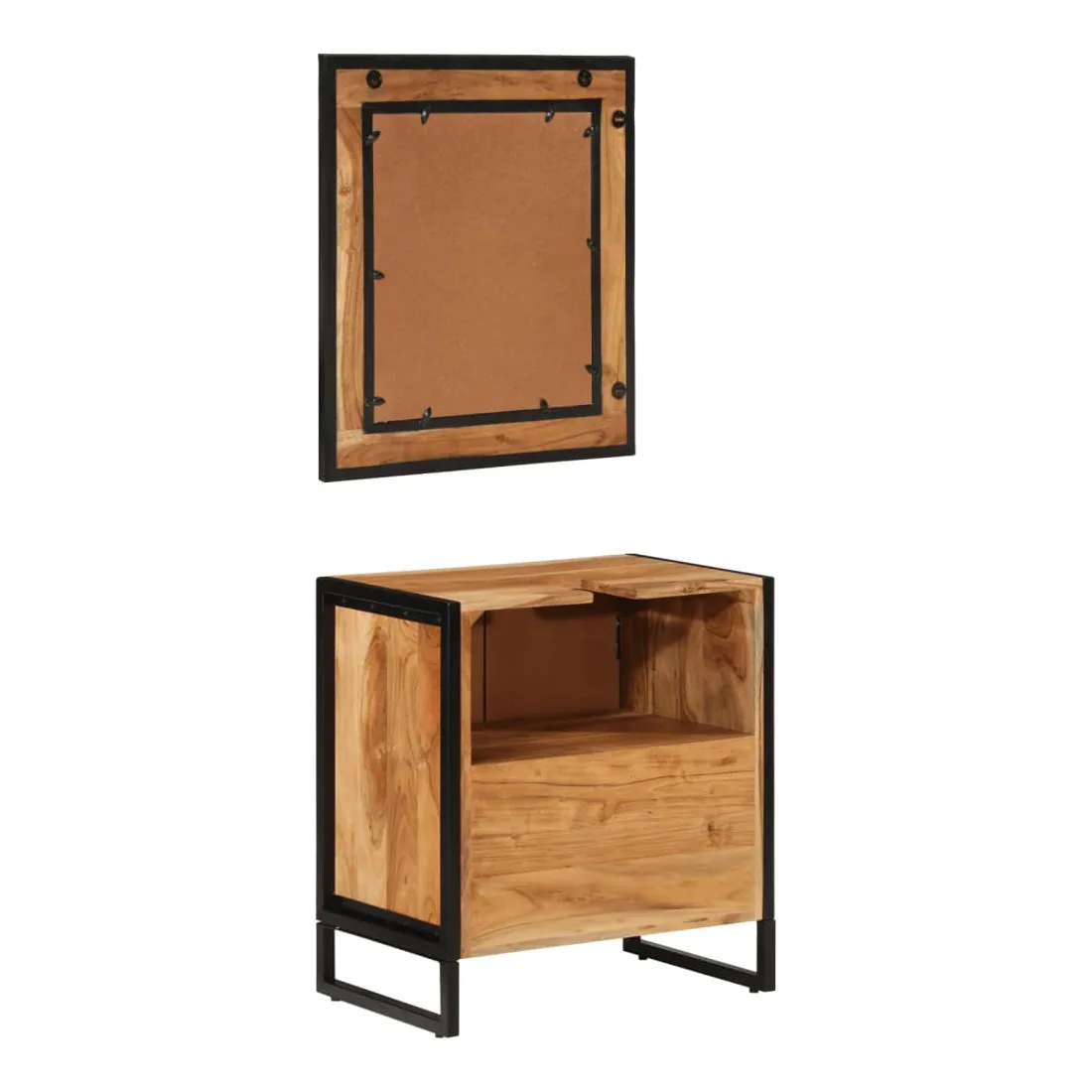 Cet ensemble de meubles de salle de bain est un excellent supplément à votre salle de bain, ce qui lui donne une apparence ordonnée et saisissante ! Matériau durable : le fer est un matériau solide et dur. Il est très apprécié dans l'industrie et la construction de meubles. Bois d'acacia massif : le bois d'acacia massif est un matériau naturel magnifique. Le bois d'acacia un bois dur tropical, qui est dense, robuste et durable.Grand espace de rangement : l'armoire pour lavabo de salle de bain comprend 2 portes qui offrent suffisamment d'espace pour ranger facilement vos articles de toilette et articles de bain essentiels tels que savons, shampoing, dentifrice, etc. Design peu encombrant : la partie supérieure de l'armoire de salle de bains est idéale pour placer le lavabo, ce qui permet d'utiliser pleinement l'espace vacant sous le lavabo. Image claire : la face en verre du miroir offre une réflexion fine et non déformée. Il convient donc pour se maquiller, se raser ou vérifier son costume avant de sortir. Attention :Pour éviter qu'il ne bascule, ce produit doit être utilisé avec le dispositif de fixation murale (non fourni).