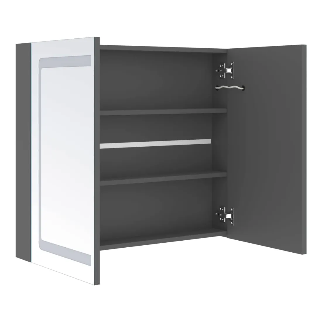Introduisez une esthétique agréable dans votre salle de bain avec cette armoire à miroir à LED ! Cette armoire à miroir murale à LED ajoute une touche de style contemporain et une lumière douce et éclairante à toute pièce ! Cette armoire murale est fabriquée en panneaux MDF avec une finition mélaminée, garantissant une utilisation à long terme. Grâce aux deux bandes lumineuses à LED écoénergétiques, vous pouvez vous voir sous la lumière la plus pure pour le maquillage, les soins de la peau et les soins de la peau. Elle illumine votre pièce, votre visage et votre sourire. À l’intérieur, vous trouverez 3 étagères offrant un espace de rangement suffisant pour tous vos articles de toilette et accessoires de beauté. Vous pouvez facilement allumer/éteindre la lumière avec le bouton au fond. Élégant et fonctionnel, ce meuble saura sûrement rendre le design de votre pièce à l’origine exceptionnel ! Remarque :Ce produit est doté d'un connecteur USB, mais la source d'alimentation certifiée de USB 5V n'est pas incluse.