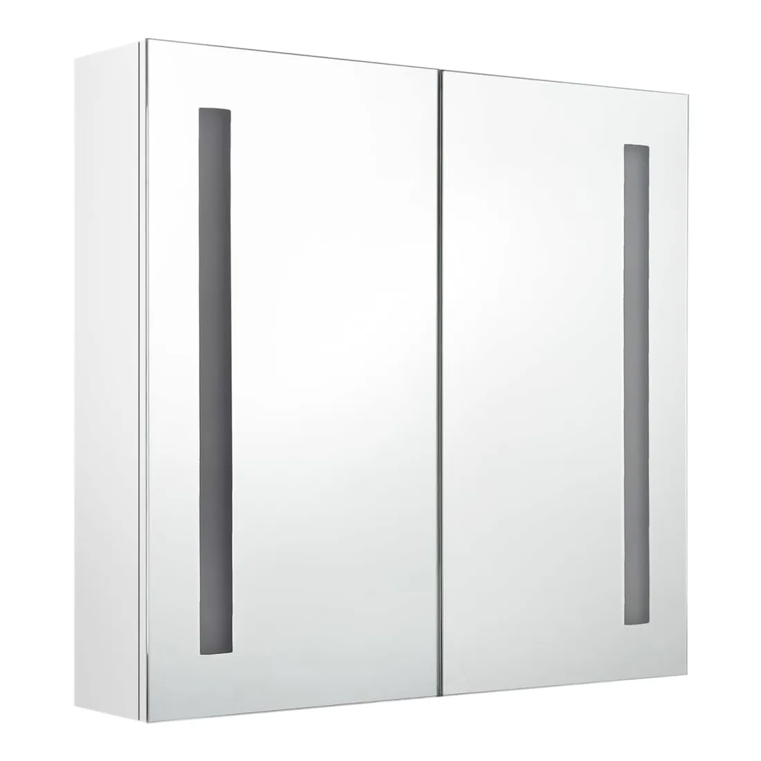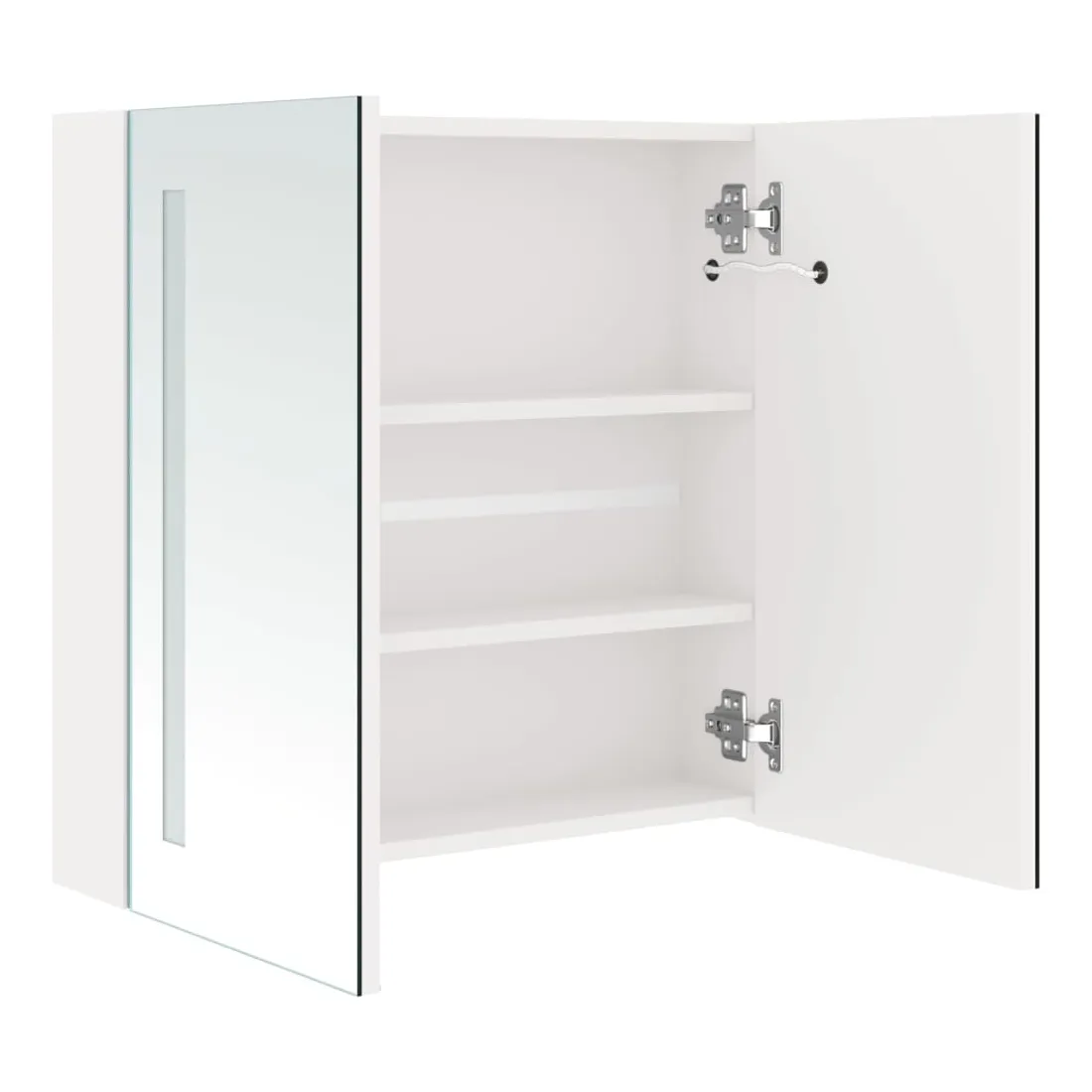 Introduisez une esthétique agréable dans votre salle de bain avec notre armoire à miroir de courtoisie LED ! Notre armoire murale à LED ajoute une touche de style contemporain et une lumière douce et éclairante à toute pièce ! Elle est faite de panneaux MDF de qualité avec une finition mélaminée, garantissant une utilisation à long terme. Grâce aux deux bandes lumineuses à LED écoénergétiques, vous pouvez vous voir sous la lumière la plus pure pour le maquillage, les soins de la peau et les soins de la peau. Elle illumine votre chambre, votre visage et votre sourire. À l’intérieur, vous trouverez 3 tablettes offrant un espace de rangement suffisant pour tous vos articles de toilette et accessoires de beauté. Vous pouvez facilement allumer/éteindre la lumière avec le bouton du bas. Élégant et fonctionnel, ce meuble saura sûrement rendre le design de votre pièce à l’origine exceptionnel ! L'armoire est facile à installer sur le mur. Remarque :Ce produit est doté d'un connecteur USB, mais la source d'alimentation certifiée de USB 5V n'est pas incluse.
