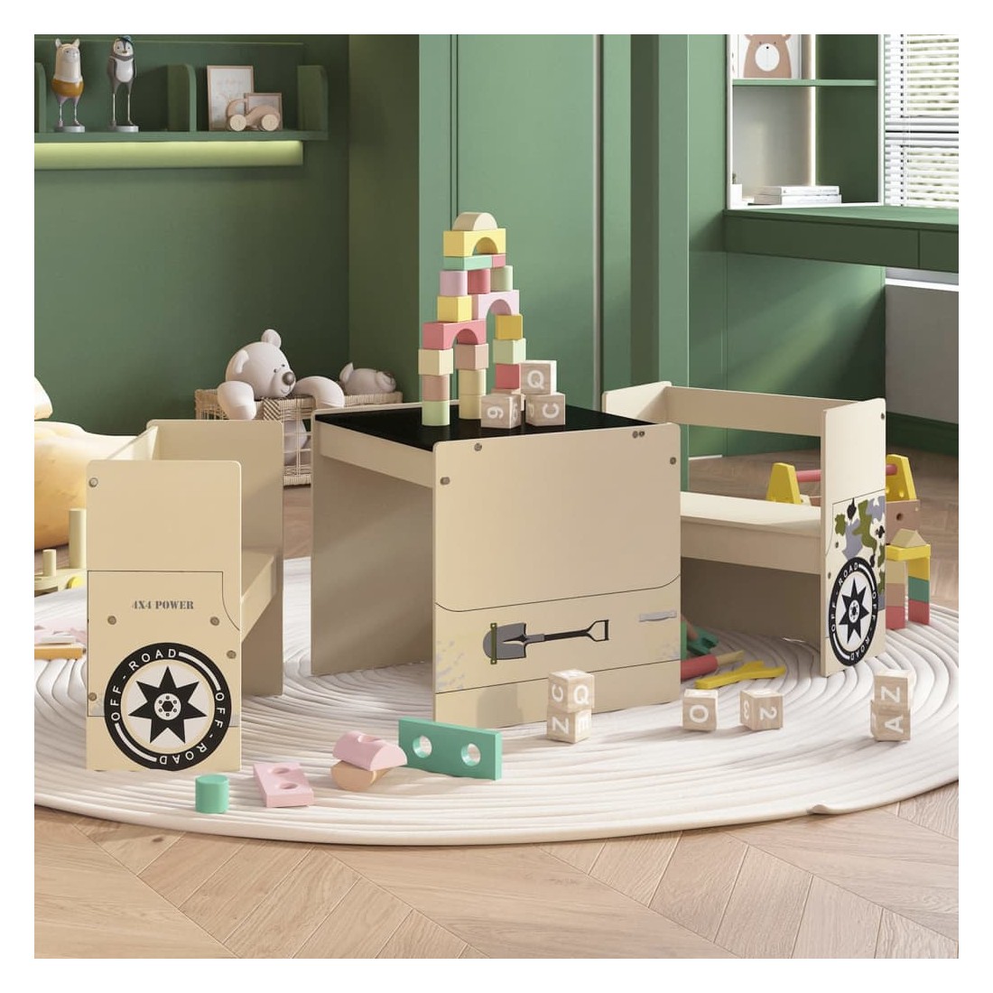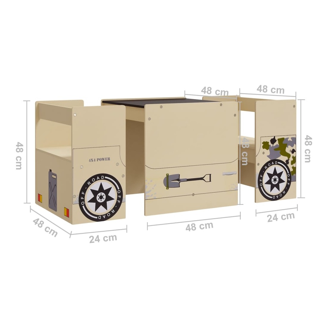 Table et chaises enfant 3 pcs Véhicule tout-terrain MDF