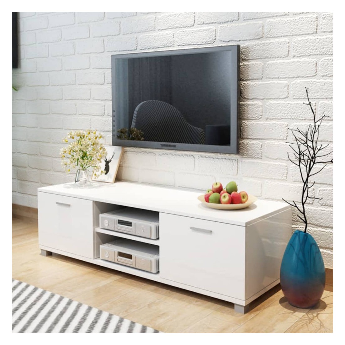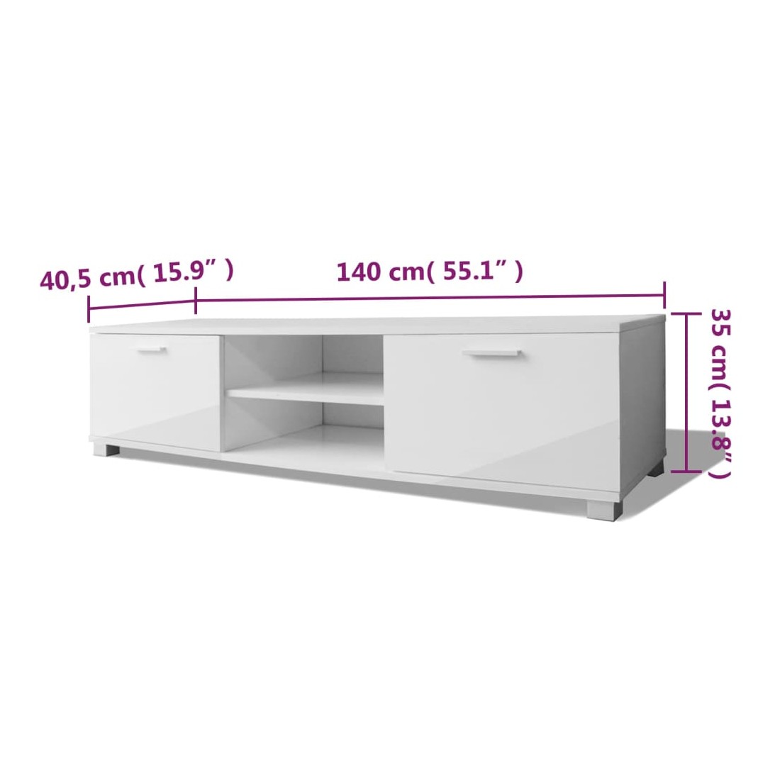 Meuble TV Blanc brillant 140x40,5x35 cm