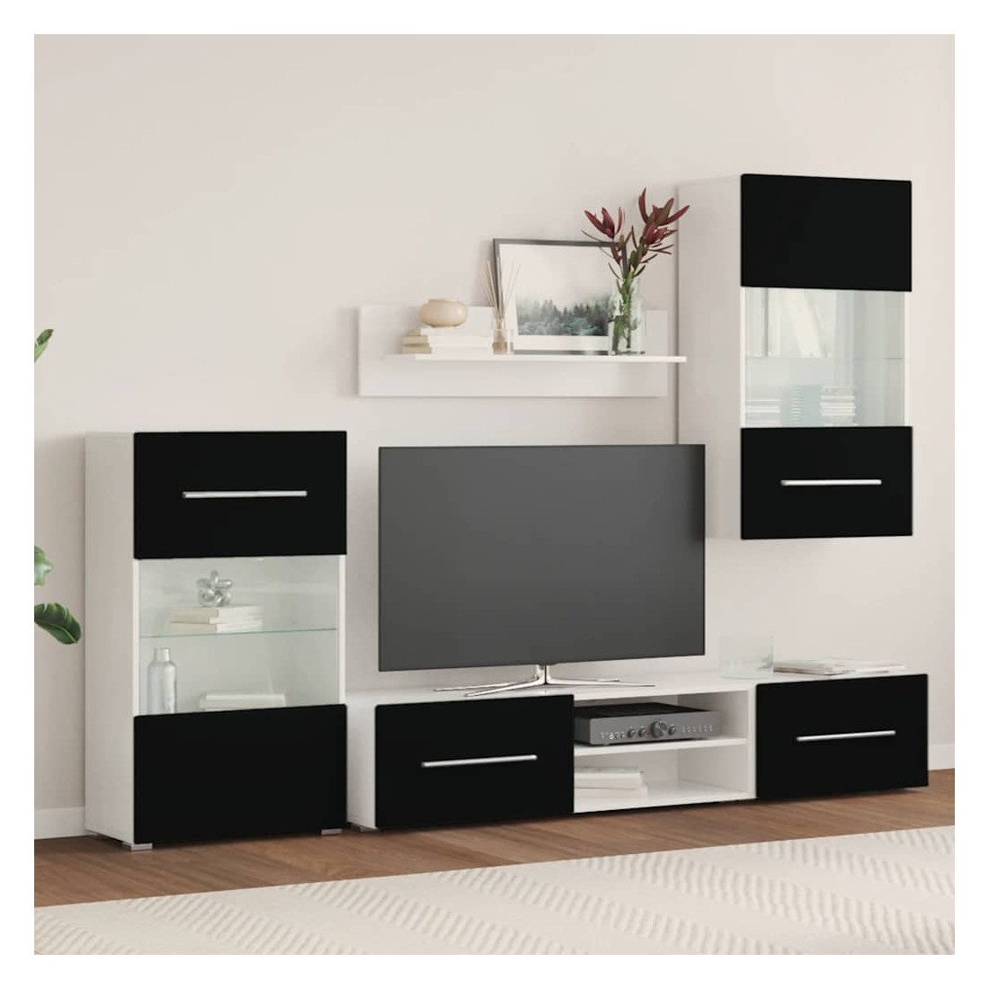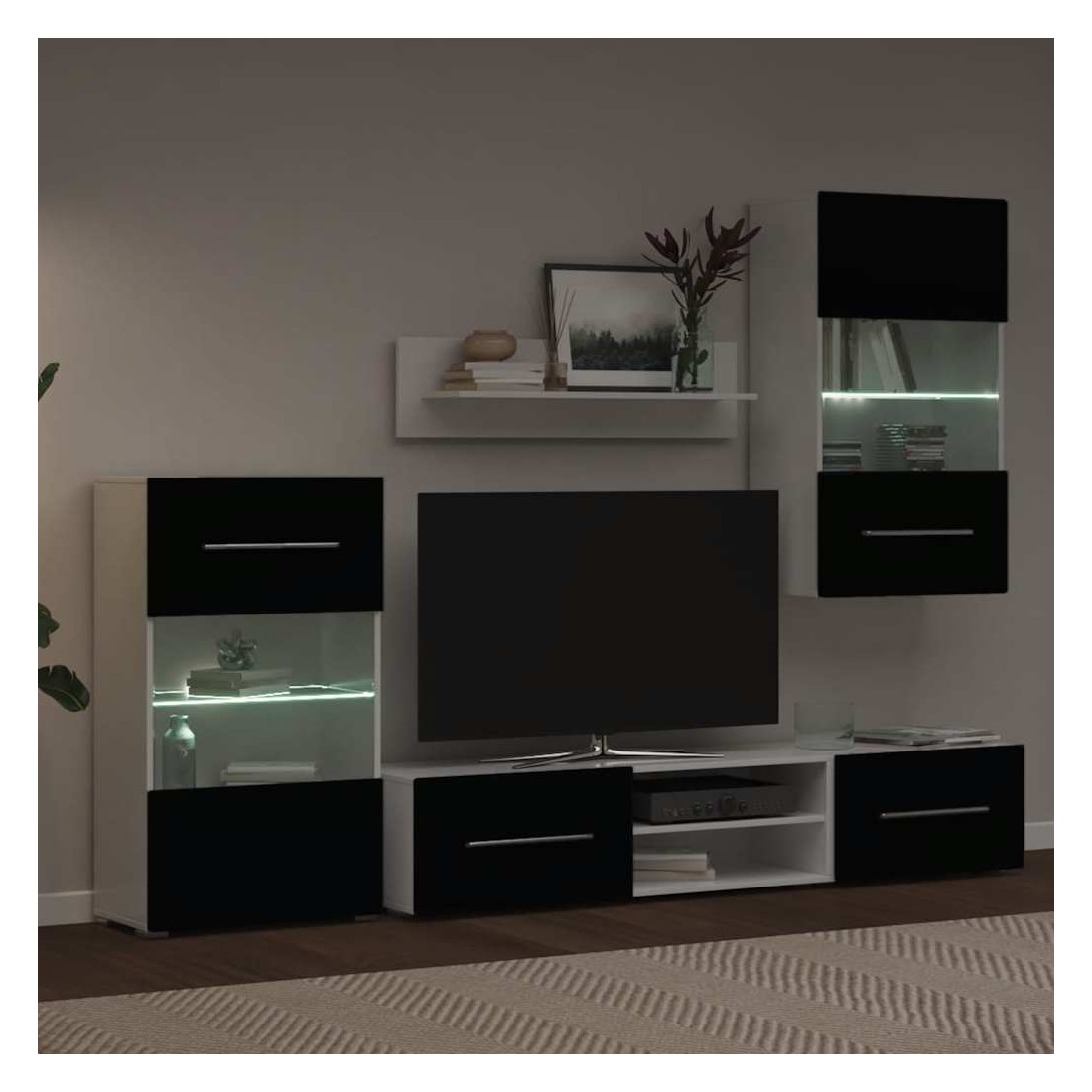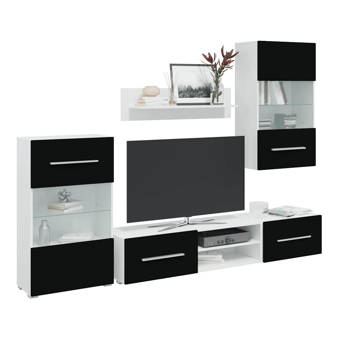 Meuble TV mural 5 pièces avec éclairage LED Noir