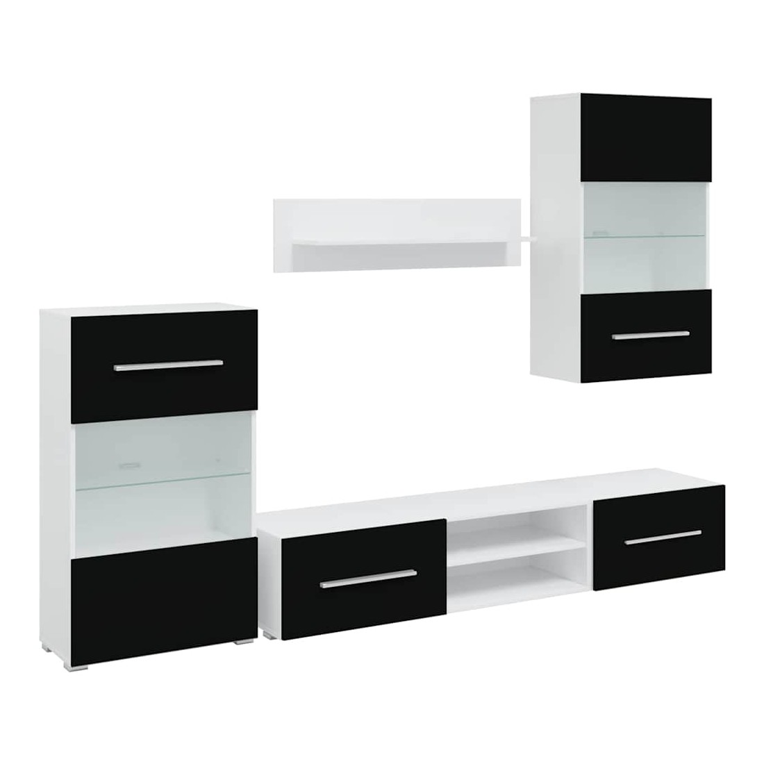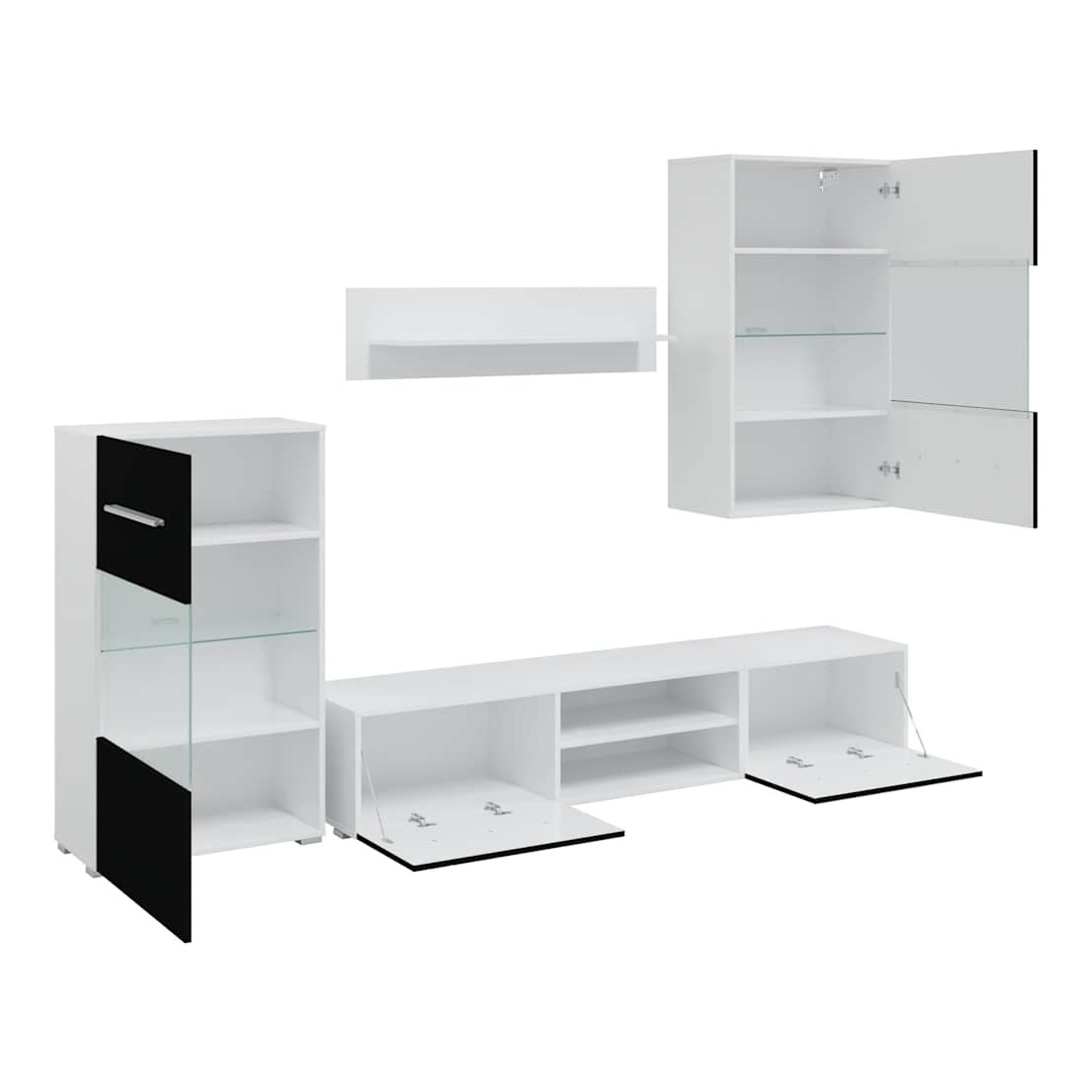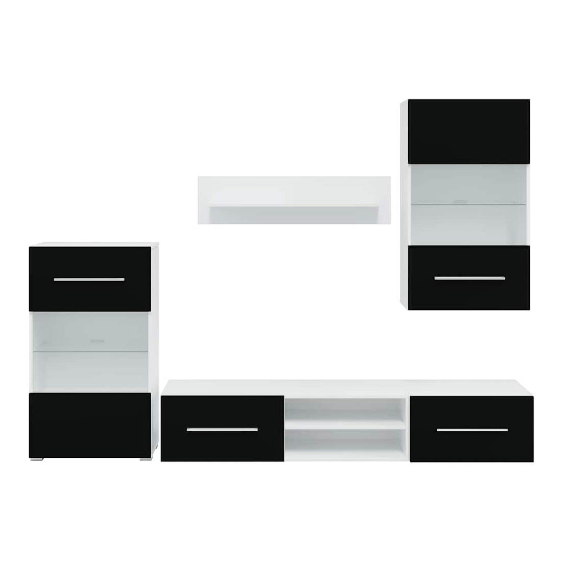 Meuble TV mural 5 pièces avec éclairage LED Noir