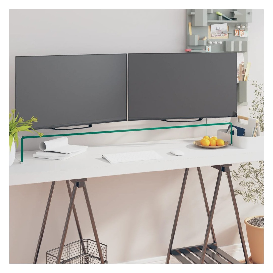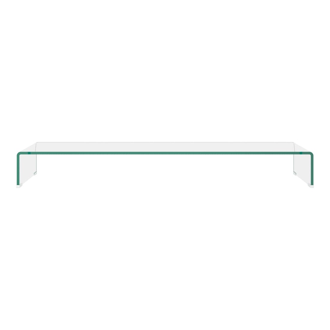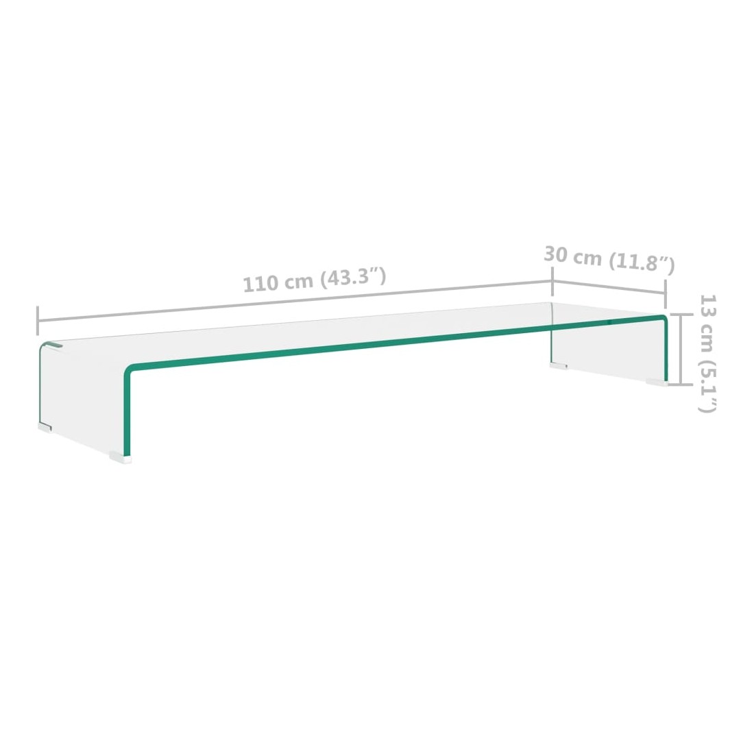 Ce support TV pratique est doté d'une construction en verre trempé. Le design élégant et profilé de ce meuble TV raffiné ajoutera une touche moderne à votre espace de vie. Cette étagère en verre peut être utilisée comme support TV ou support pour votre moniteur d'ordinateur, téléviseur, ordinateur portable et autres appareils multimédia. Avec une étagère en verre qui soulève le moniteur, vous aurez une meilleure vision de l'écran en étant confortablement assis, ce qui permet à réduire la tension et l'inconfort sur votre cou ou dos. L'espace en dessous peut accueillir votre lecteur de DVD, console de jeux, appareil de diffusion en continu, récepteurs et des supports média. Le cadre en verre est trempé pour ajouter de la résistance et de la sécurité. La surface lisse est facile à nettoyer avec seulement un chiffon humide.