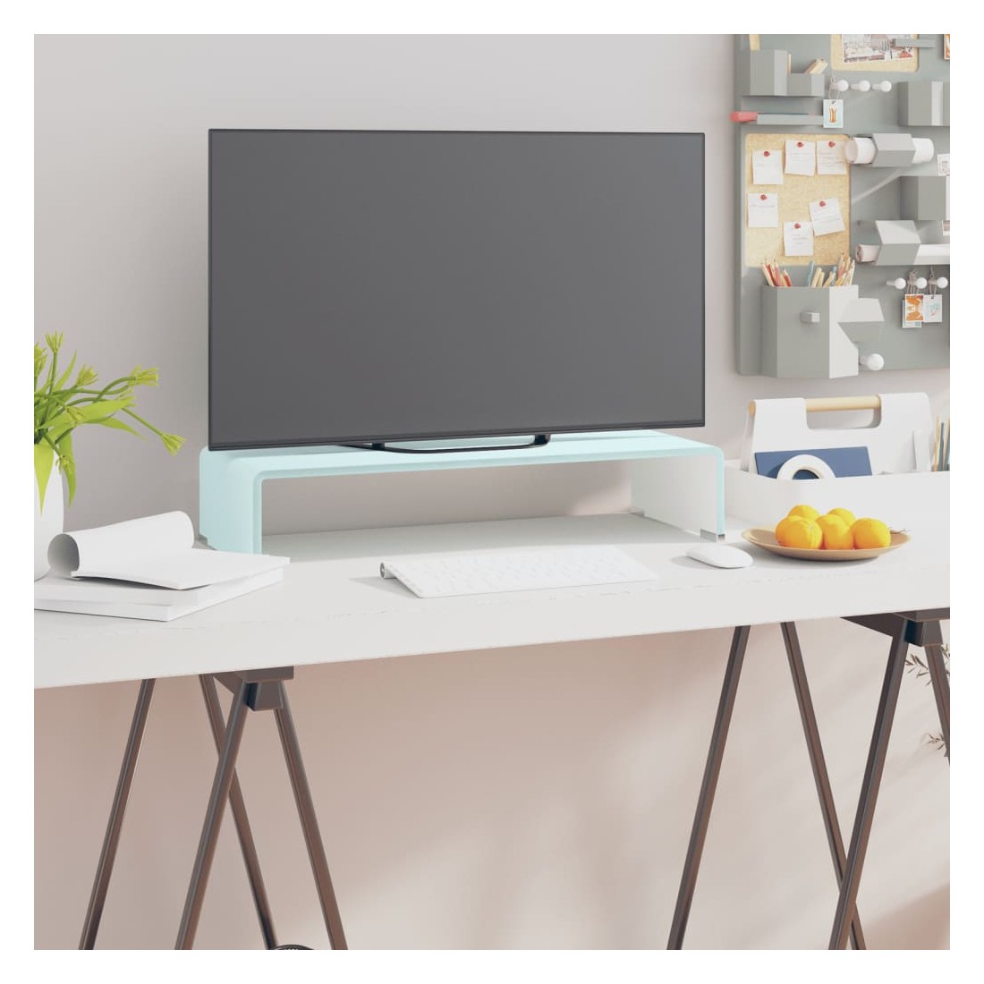 Ce support TV pratique est doté d'une construction en verre trempé. Le design élégant et profilé de ce meuble TV raffiné ajoutera une touche moderne à votre espace de vie. Cette étagère en verre peut être utilisée comme support TV ou support pour votre moniteur d'ordinateur, téléviseur, ordinateur portable et autres appareils multimédia. Avec une étagère en verre qui soulève le moniteur, vous aurez une meilleure vision de l'écran en étant confortablement assis, ce qui permet à réduire la tension et l'inconfort sur votre cou ou dos. L'espace en dessous peut accueillir votre lecteur de DVD, console de jeux, appareil de diffusion en continu, récepteurs et des supports média. Le cadre en verre est trempé pour ajouter de la résistance et de la sécurité. La surface lisse est facile à nettoye