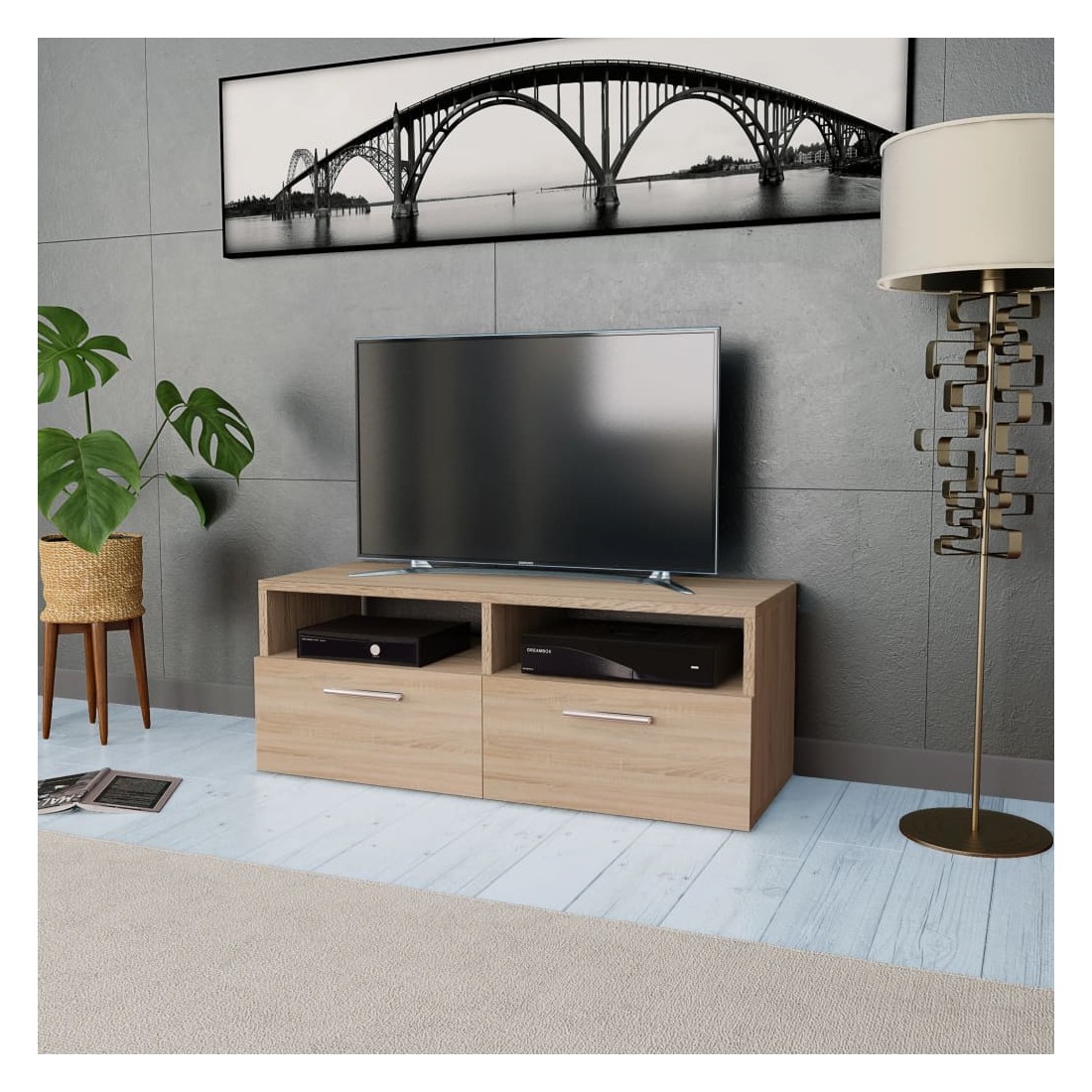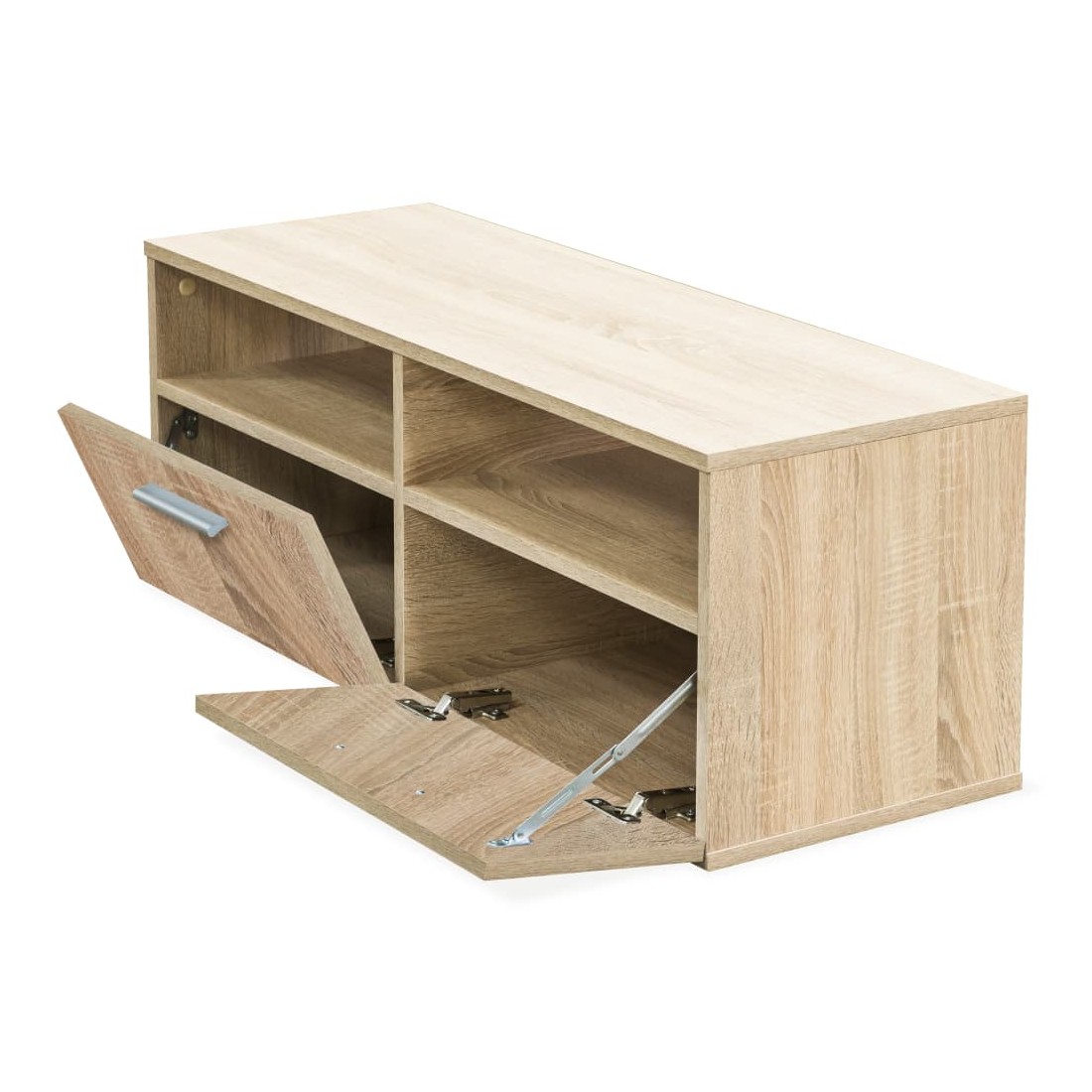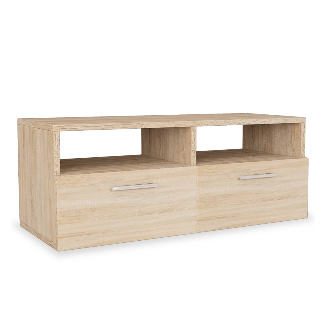 Le meuble TV moderne a un design sobre et pratique et conviendra à n'importe quel décor de maison. Le meuble HiFi est en bois d’ingénierie avec des bords en PVC et est stable et durable. Il a deux étagères ouvertes et deux armoires avec des portes s'ouvrant vers le bas qui ont amplement d'espace de rangement pour votre lecteur DVD, console de jeu, récepteur numérique ou vos supports média. Ce meuble TV sera un excellent supplément à votre chambre à coucher ou salon. L'assemblage est facile.