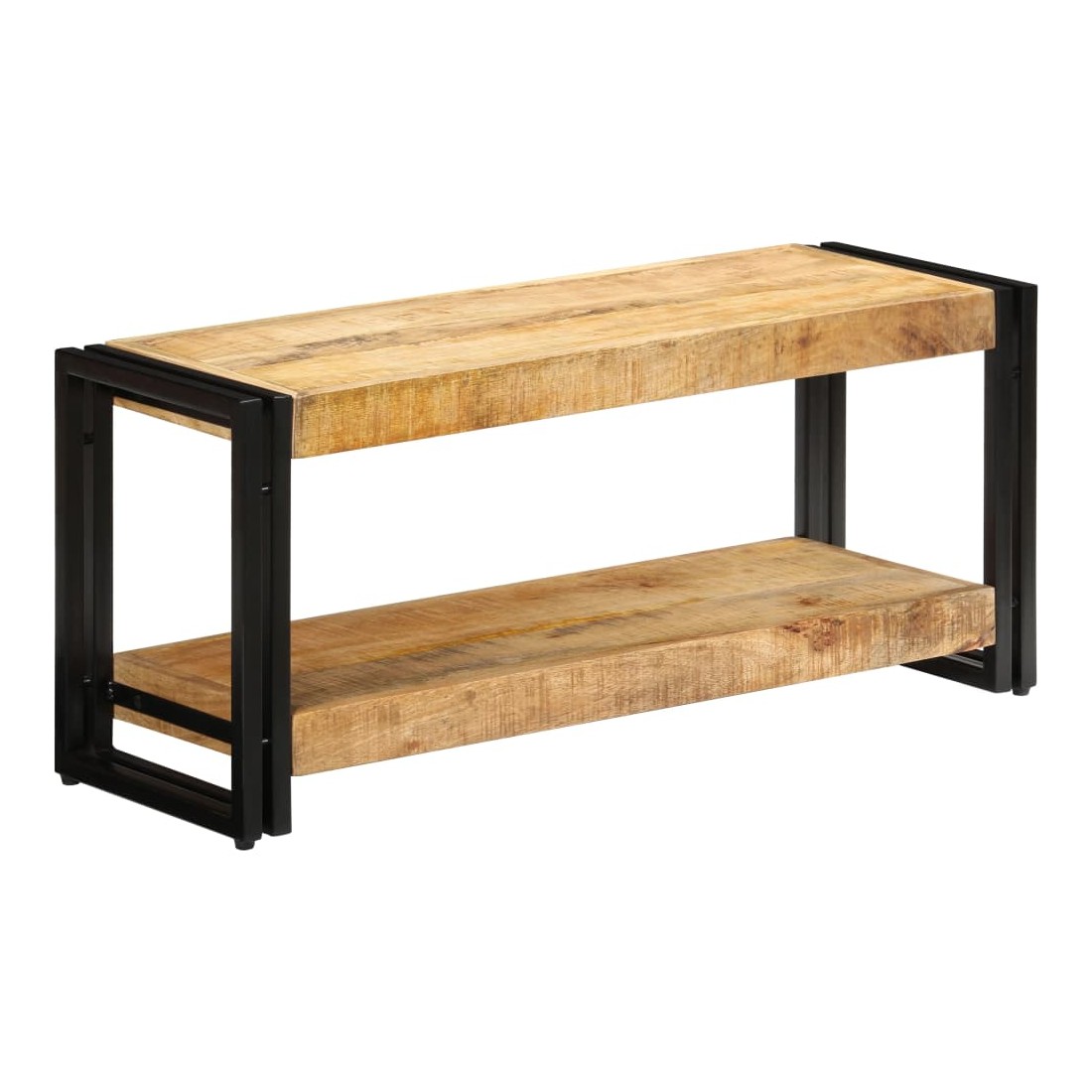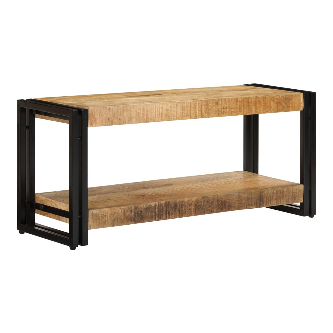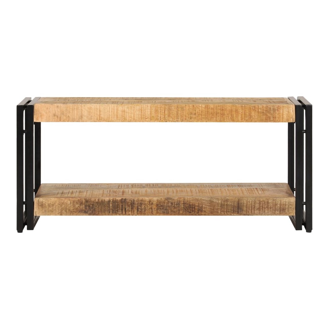 Ce meuble TV en bois de style antique dégage un charme vintage. Il sera un supplément accrocheur à votre intérieur. L'armoire HiFi est fabriquée en bois de manguier massif, un bois dur aux grains denses. Le bois de manguier brut a non seulement la force de supporter le poids, mais il résiste aussi à l'usure du temps. C'est la raison pour laquelle cette armoire d'entrée au design élégant est stable, durable et attrayante pour les yeux. Ce meuble stéréo est entièrement fabriqué à la main et les grains de bois esthétiques rendent chaque meuble unique et légèrement différent l'un de l'autre. Les pieds en fer enduit de poudre renforcent la robustesse de l'armoire à chaussures ainsi que le style industriel. Cette armoire dispose d'une étagère, offrant suffisamment d'espace pour ranger vos ap