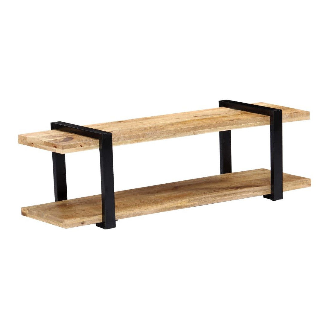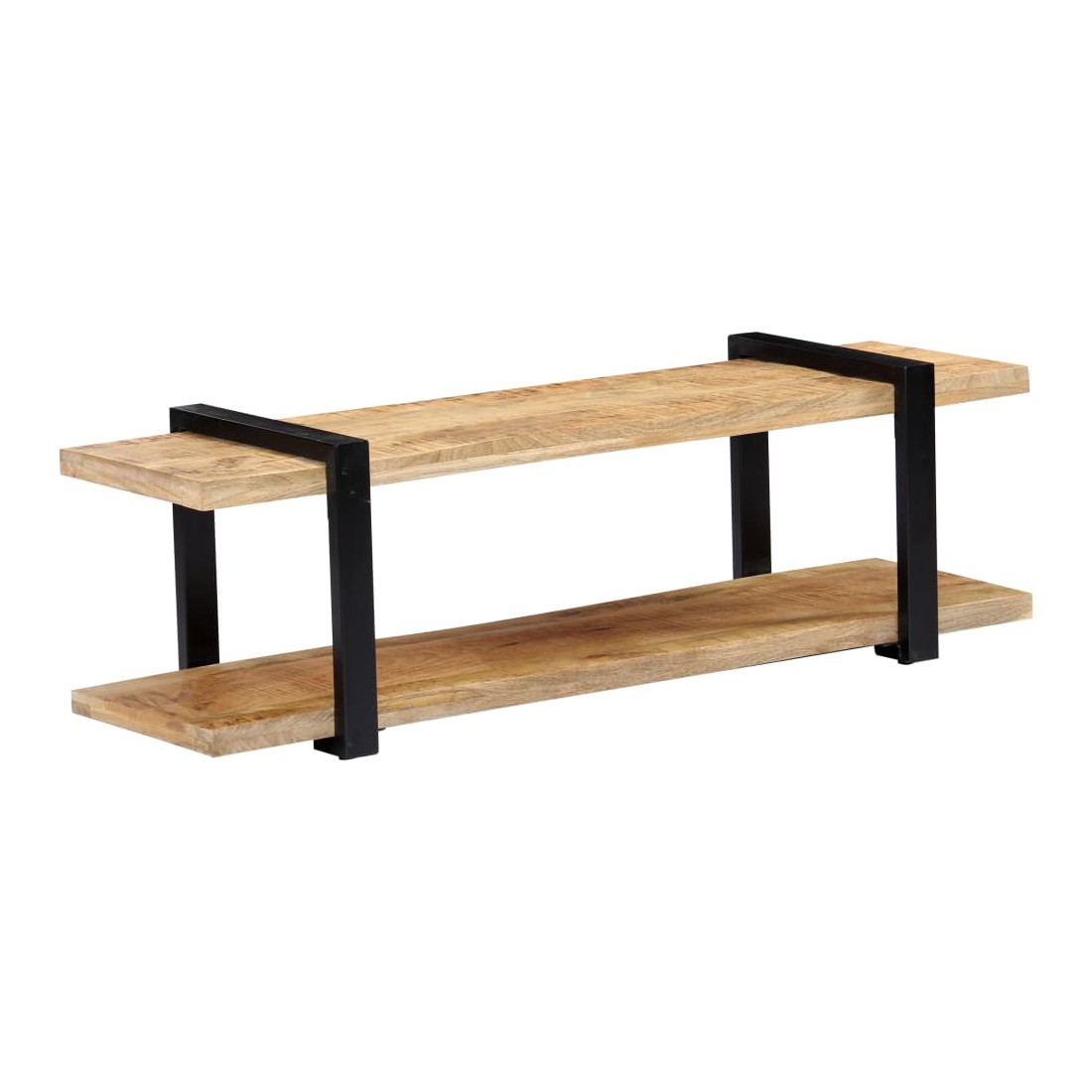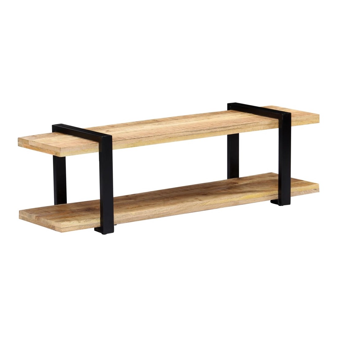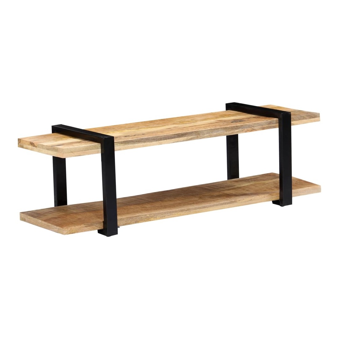 Ce meuble TV de style industriel deviendra le point de mire de votre salon ou de votre espace de divertissement. Il peut également être utilisé comme table basse, buffet, bahut, etc. Le meuble de télévision est fait de bois de manguier massif, un bois dur dense et robuste qui présente des belles stries brunes ou dorées et des contours à la surface. Chaque étape du processus est réalisée avec le plus grand soin, que ce soit le polissage, la peinture ou le laquage. Le savoir-faire et les beaux grains de bois font de chaque meuble un objet unique et légèrement différent l'un de l'autre. Les pieds en fer enduit de poudre ajoutent une stabilité supplémentaire. L'étagère inférieure vous permet de garder les lecteurs de DVD, les consoles de jeu, les appareils de diffusion en continu et les supports multimédia bien rangés. Remarque importante : les couleurs varient d'une pièce à l'autre, rendant chacun de nos meubles TV unique. La livraison est aléatoire, ce qui garantit l'exclusivité et l'individualité de votre produit.