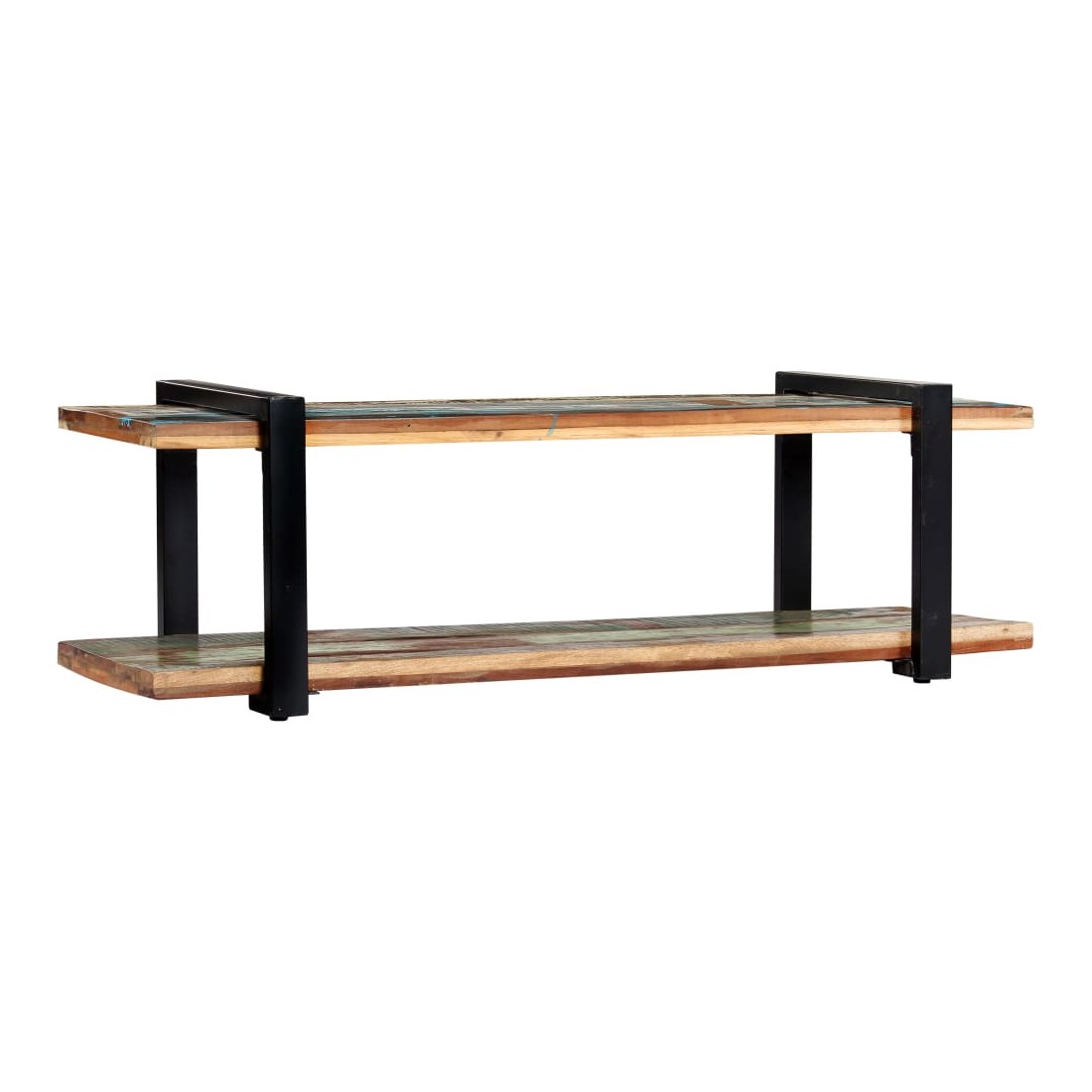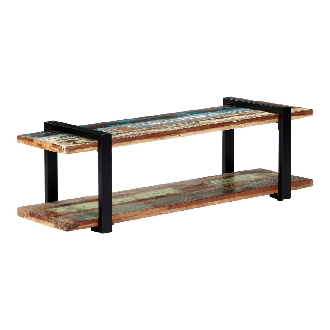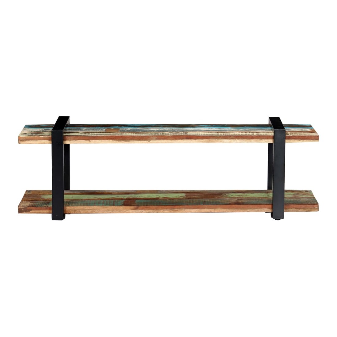 Ce meuble TV de style industriel deviendra le point de mire de votre salon ou de votre espace de divertissement. Il peut également être utilisé comme table basse, buffet, bahut, etc. Le meuble de télévision est fait de bois de récupération massif, qui présente les caractéristiques de différents bois comme le bois de teck, le bois de manguier, le bois d'acacia, etc. Le bois de récupération est déjà vieilli, érodé et séché, donc il ne rétrécit pas et ne se plie pas. Chaque étape du processus est réalisée avec le plus grand soin, que ce soit le polissage, la peinture ou le laquage. Le savoir-faire et les beaux grains de bois font de chaque meuble un objet unique et légèrement différent l'un de l'autre. Les pieds en fer enduit de poudre ajoutent une stabilité supplémentaire. L'étagère inférieure vous permet de garder les lecteurs de DVD, les consoles de jeu, les appareils de diffusion en continu et les supports multimédia bien rangés. Remarque importante : les couleurs varient d'une pièce à l'autre, rendant chacun de nos meubles TV unique. La livraison est aléatoire, ce qui garantit l'exclusivité et l'individualité de votre produit.