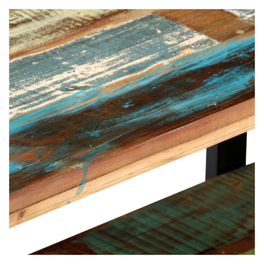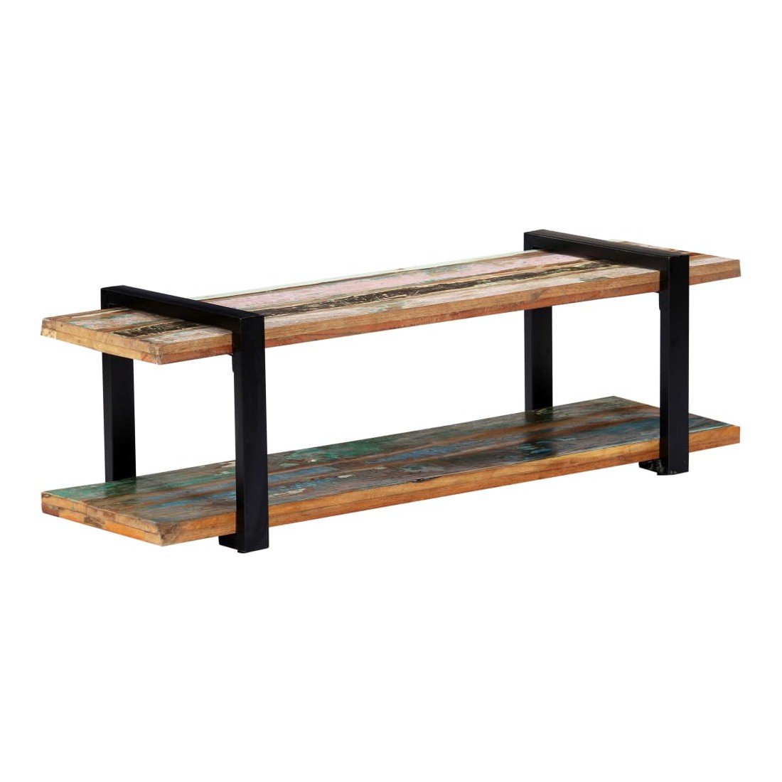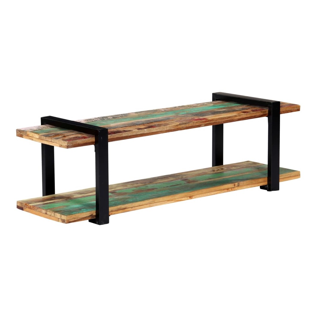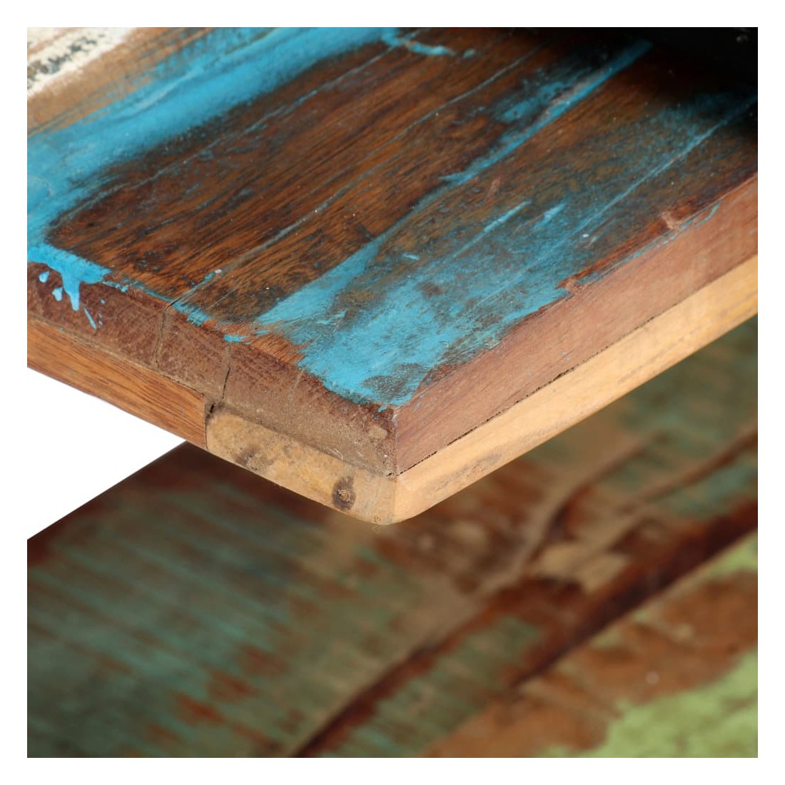 Ce meuble TV de style industriel deviendra le point de mire de votre salon ou de votre espace de divertissement. Il peut également être utilisé comme table basse, buffet, bahut, etc. Le meuble de télévision est fait de bois de récupération massif, qui présente les caractéristiques de différents bois comme le bois de teck, le bois de manguier, le bois d'acacia, etc. Le bois de récupération est déjà vieilli, érodé et séché, donc il ne rétrécit pas et ne se plie pas. Chaque étape du processus est réalisée avec le plus grand soin, que ce soit le polissage, la peinture ou le laquage. Le savoir-faire et les beaux grains de bois font de chaque meuble un objet unique et légèrement différent l'un de l'autre. Les pieds en fer enduit de poudre ajoutent une stabilité supplémentaire. L'étagère inférieure vous permet de garder les lecteurs de DVD, les consoles de jeu, les appareils de diffusion en continu et les supports multimédia bien rangés. Remarque importante : les couleurs varient d'une pièce à l'autre, rendant chacun de nos meubles TV unique. La livraison est aléatoire, ce qui garantit l'exclusivité et l'individualité de votre produit.